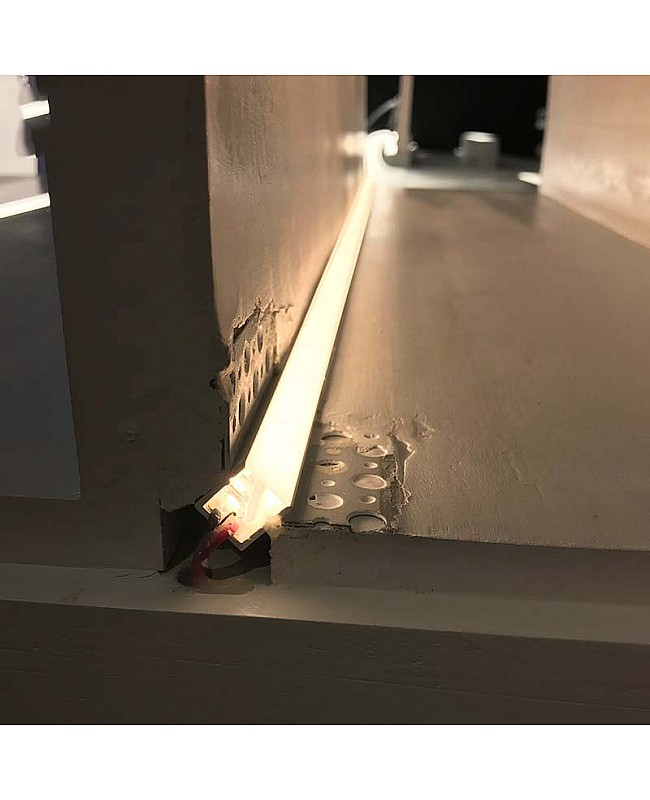 The LED drywall extrusion for linear LED light, which is easy to install in the internal corner between two walls, is perfect for creating a seamless and professional-looking installation on any wall or ceiling. The extrusions for LED strips are made of durable anodized aluminum material, with anti-oxidation resistance and a longer lifespan. The standard lengths are 1M and 2M, and can be cut to any length that fits your needs. The inner width is 10.5mm, allowing the maximum width to be 10mm. Recommend adding high-density SMD or COB strip lights as the light source. The aluminum base can be used as a heat sink for better heat dissipation, extending the lifespan of LED strips. There is only one type of diffuser available: the PC diffuser cover, which is made of brand material with stable quality, anti-yellowing, perfect light distribution, and even output light. End caps with wire holes and without wire holes are included. It is easy to connect the LED light strip to the LED adapter to light them up, or connect to the LED controller or LED dimmer to change the color-changing style or brightness.