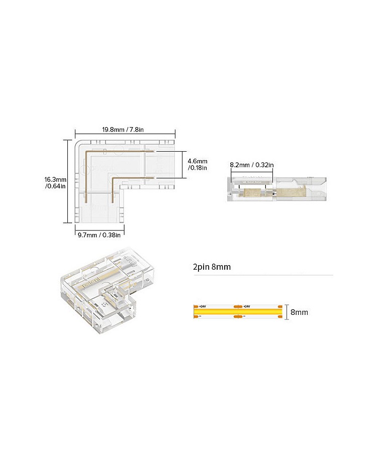 - 2P For Single Color, 3P For Tunable White And 4P For RGB COB LED Strips