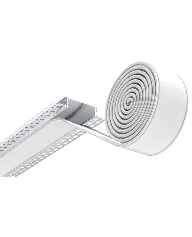 The LED light diffusers with flanges are easy to recess into the drywall structure on the wall or ceiling and come with 20 a 20-meter-long diffuser to create a seamless and shadow-free look. They are ideal for offices, retail spaces, shopping malls, hotels, restaurants, and commercial facilities to create longer linear lighting. There are 2 types of covers available: the PC diffused cover and the black diffused cover. The diffusers are made of brand material and are anti-yellowing. They are designed to disperse the light from LED strips, creating even, uniform light free of glare and hotspots. It can cut the cover to any length for your interior linear lighting projects. The aluminum base is made of 6063-T5 extruded aluminum material with an anodized surface treatment, anti-oxidation feature, and has a longer lifespan than similar products. There are three colors available: silver, white, and black. Standard lengths are 1M and 2M; you can cut to any length, and custom lengths are available. The inner width is 51.4mm, which allows the max-width of LED lights to be 50mm. You can install multiple lines of flexible COB LED strips or rigid LED tapes in it. The aluminum base can be used as a heat sink for better heat dissipation. End caps with wire holes are included, and it is easy to connect the LED light to a power supply or a dimmer to light up or adjust the brightness. There are three types of joiners available: 90°, 90° vertical, and 180 Joiners, which can be used to reconnect the LED light diffusers together for lighting projects.