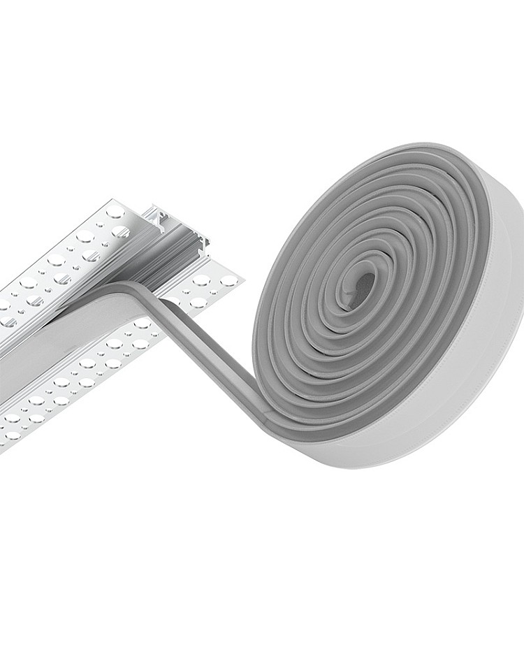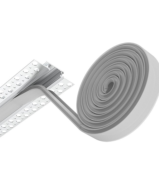 The LED recessed profiles with flanges can be recessed in the drywall or ceiling and come with a long diffuser that is 20 meters per roll, which you can use for long indoor linear lighting without any gap. The recessed aluminum profiles are made of extruded aluminum material with an anodized surface treatment for anti-oxidation resistance and a longer lifespan than similar products. The standard lengths are 1M and 2M, and cuttable and custom lengths are available. There are 2 types of diffusers available: the PC diffused cover and the black diffused cover. Both are flexible and 20 meters per roll; you can cut to any length you need, or you can use them for long-distance linear lighting projects. The inner width is 12.4mm and can work with flexible SMD LED tapes and COB LED strips; the maximum width of the PCB board is 12mm. End caps with holes included make it easy to connect the LED light to a power supply to light up. The 90°,135°, and 180° connectors are sold separately, and you can use them to design the shape for your application.