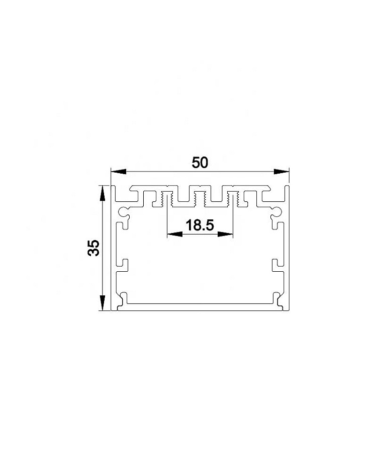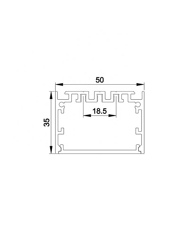 The 50mm width LED strip lighting mounting channel for pendant lighting, the inner width is 18.5mm, and is compatible with 140mm/280mm or 560mm LED modules as the light source. You can use them as the main lighting in offices, stores, supermarkets, shops, etc. Metal clips and suspension wires are included; you can hang them on the ceiling or mount them on the wall. Made of 6063-T5 aluminum alloy material with silver anodized surface treatment, anti-oxidation resistance, and a longer lifespan than similar products. The standard length is 1 meter, and the maximum is 2.5 meters per piece. It can be cut to any size for your interior design. Only a PC opal matte diffuser is available, made of Japanese import brand stable material, anti-yellowing, perfect light distribution, and smooth light output. The aluminum LED light channel can be used as a heat sink for better heat dissipation, and it is easy to install the LED strips or LED modules on the LED strip light channel. Remove the protector on the tape and stick it on the LED channel or use screws to fix the LED modules. Connecting the LED lighting driver or dimmer to light up or adjust the brightness is easy.