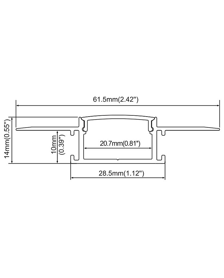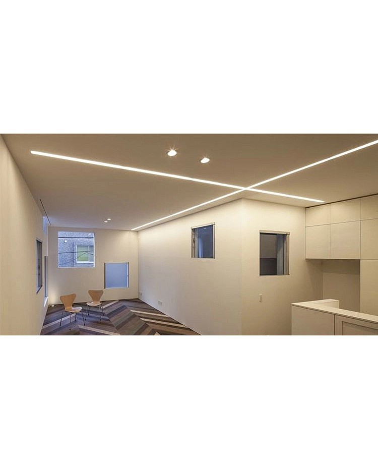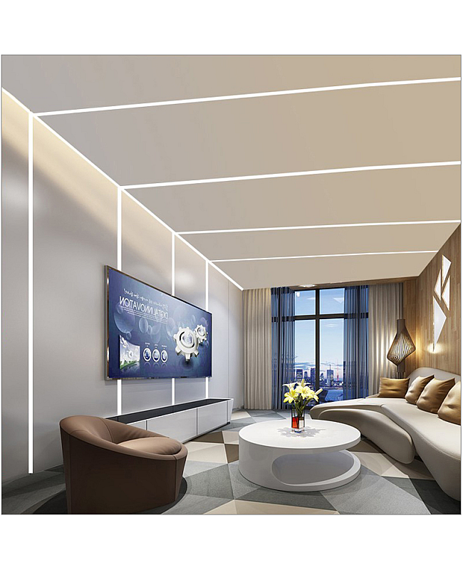 The drywall LED tape channels are designed for seamless integration into 1/2 plasterboards to illuminate ceilings and walls. They can house and conceal a maximum width of 20mm LED strips, protecting them from dust and damage, while ensuring even light diffusion. Ideal for ceiling or wall linear lighting in residential and commercial applications in kitchens, offices, bedrooms, hallways, and more. They are made of 6063-T5 aluminum material with an anodized finish, anti-oxidation resistance, and a longer lifespan. The standard lengths are 1 m and 2 m; you can cut to any length you need. Three types of diffusers are available: PC clear diffuser, PC semi-clear diffuser, and PC opal diffuser. The channel diffusers are made of high-quality material, ensuring stable performance, anti-yellowing properties, and perfect illumination distribution. The inner width is 20.7 mm, allowing for a maximum tape width of 20 mm. Recommend adding high-density COB LED tapes as the source to create a seamless line of lighting without visible hot spots or dark areas. End caps with and without wire holes are included. Three types of joiners are available for angled and straight connections.