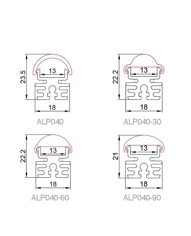 - Size: ALP-040: 18*23.5mm(W*H); ALP-040-30: 18*22.2mm(W*H); ALP-040-60: 18*22.2mm(W*H); ALP-040-90: 18*21mm(W*H)