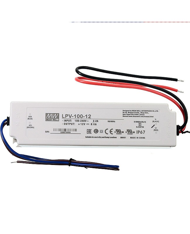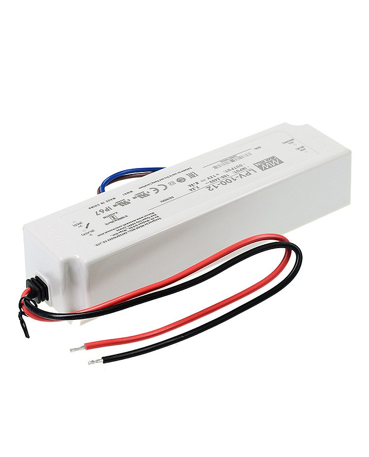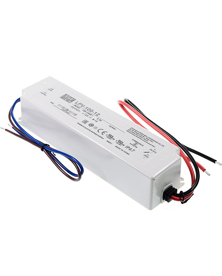 The LPV-100 series Meanwell LED drivers, epoxy encapsulated with IP67 level for harsh conditions, can be used in a rainy or wet location. With constant voltage design and universal AC input, the input range is from 90VAC to 264VAC, making it easy to connect directly to the public power system. Various output voltage and loading power Mean Well waterproof LED drivers are available; you can choose the 5VDC, 12VDC, 15VDC, 24VDC, 36VDC, or 48VDC, with a max loading power of up to 100W. You can use it for LED decoration, LED-related fixtures, or advertisement devices, etc.