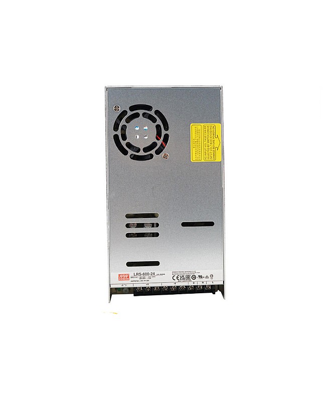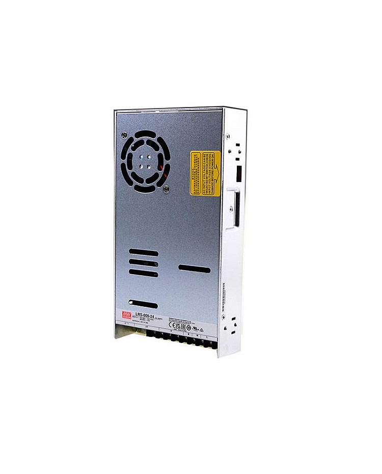The Mean Well LRS-600 is a 600W single-output enclosed power supply with a 41mm low-profile design. There are 5V, 12V, 15V, 24V, 36V, and 48V products available, and the input voltage can be adjusted by pressing the switch on the side. In addition to the high efficiency of up to 92%, with the built-in long-life fan, the 600W Mean Well power supply can work under -20℃ to 65℃ with a full load. The LRS 600 has complete protection functions and 5G anti-vibration capability. It complies with complete international safety regulations. The 24V power supplies can be used for various industrial applications and work with our SMD or COB LED stripe lights.