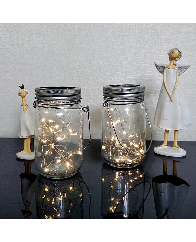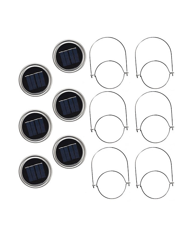 The Mason Jar Lids solar string lights have 6 Lids with string lights and 6 handles. NO Jars included. The Lids fit most regular mouth Mason Jars, regular mouth, 2 3⁄8 in (60 mm) inner and 2 3⁄4 in (70 mm) outer diameter, with a built-in solar panel and a rechargeable NI-MH battery. One LED string light connected to the Lids is 2 meters long and has 20 pieces of 0603 LEDs. There is a switch on the back of the Lid. When you dial the switch to the ON side, the solar panel will charge the battery under the sunshine in daylight. The charging time is around 8 hours. The rechargeable battery will light up the string lights at night for over 12 hours. Saving energy and friendly to the environment, the integrated design will not let the rain or water through the solar panels, the O-shape seal ring will not let the rain get into the jars. Great idea for DIY light for outdoor garden, patio, deck, decoration for wedding, party, Christmas, etc.