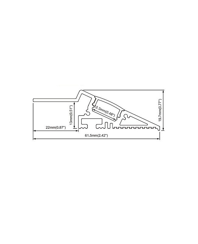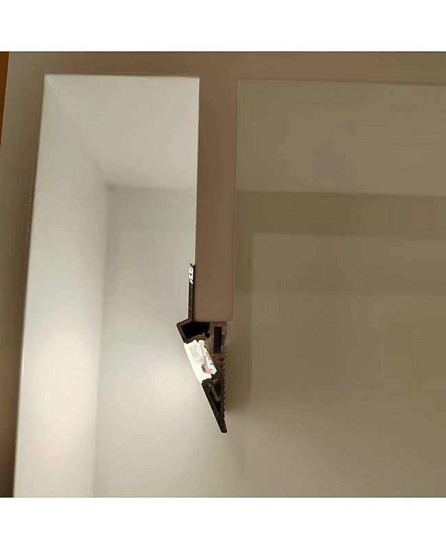 These trimless LED channels can be seamlessly installed flush in 1/2" plasterboards on false ceilings or walls for a clean and minimalist finish. They are designed for indirect wall-washing effects in drywall ceilings or false walls. The angled light output softly illuminates wall surfaces, making it ideal for ambient and decorative lighting in residential or commercial interiors. The stock lengths are 1m and 2m, and can be cut to any size to meet your needs. The aluminum LED channels are made of extruded aluminum alloy with an anodized finish, offering anti-oxidation resistance, energy efficiency, and long-lasting durability. Several types of diffusers are available, and they are made of brand-stable material, anti-yellowing, and with perfect light distribution. The inner width is 12.3 mm, allowing for a maximum strip light width of 12 mm. We recommend adding high-density SMD or COB LED strips as the light source, with no visible light dots, to create a smooth and seamless illumination. The 90° inside connectors, 90° outside connectors, and 180° couplers are available and can be used for interior lighting design.