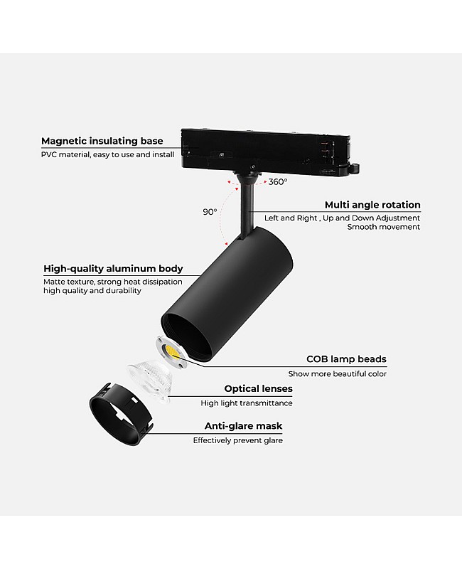 The MiBoxer 30W plug-in track lighting is compatible with a 4-wire rail and can move randomly on the rail. With a magnetic insulating base that is easy to install and use, the lamp base has a multi-angle rotation design. You can rotate to the left and right, up and down smoothly. Ideal solution for accent lights and task lighting applications in shopping malls, offices, restaurants, galleries, museums, etc., the Zigbee track light uses one piece of COB LED as the light source, integrates Zigbee 3.0 and 2.4G protocols, can be controlled by 2.4G RF remote controls to choose the colors, 16 millions of colors to choose, the saturation, brightness and color temperature adjustable for various scenes. The track spotlights can transmit the signals from the remote control to other track lighting fixtures within 30 meters. All of them can work synchronously when they are started at different times, controlled by the same remote, under the same dynamic mode, and within a 30m distance. After matching a Zigbee gateway, the MiBoxer track spotlight can be controlled by a smartphone APP and third-party voice commands and can work with Amazon Alexa and Google Assistant. It can also enter into Philips Hue, IKEA TRADFRI, Amazon ECHO series standard Zigbee 3.0 gateways.