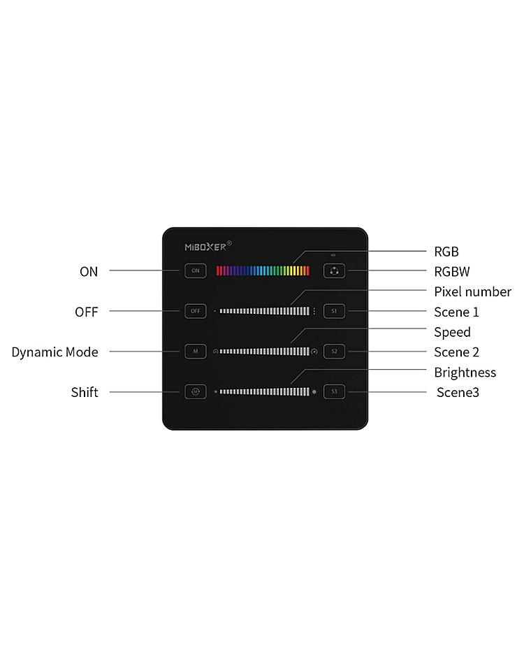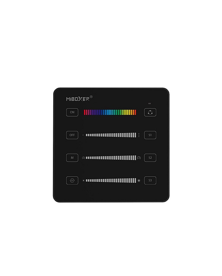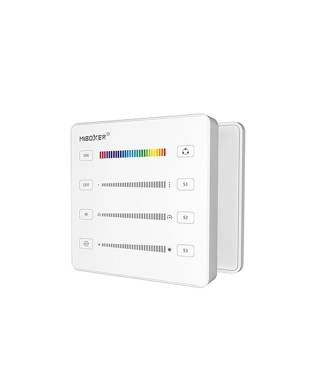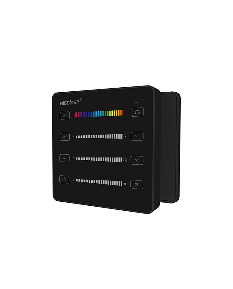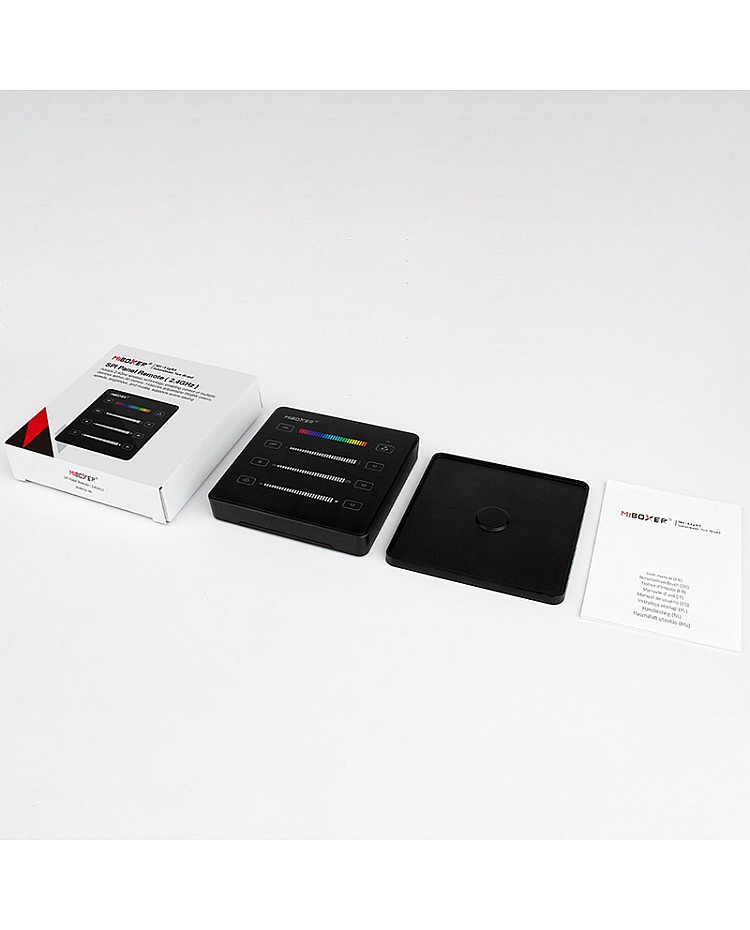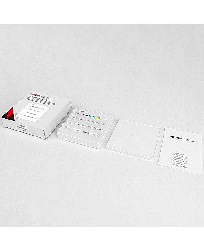 The MiBoxer B6 Wireless panel remotes can work with SPIR3-M and SPIR3 pixel LED controllers to align the color and adjust addressable LED strips' length(number of pixels). They adopt 2.4G wireless transmission technology with fast transmitting speed, stable signal, and strong anti-interference ability. The B6 remote can control multiple devices at the same time and support communication with various controllers. You can use it to change dynamic mode, select color, adjust brightness, and dynamic lighting features. You can edit the width and color for dynamic mode. The timer function allows you to set the time and color for ON/OFF. The B6 can create ambiance lighting for commercial or home lighting. The magnetic holder is included for simple installation.