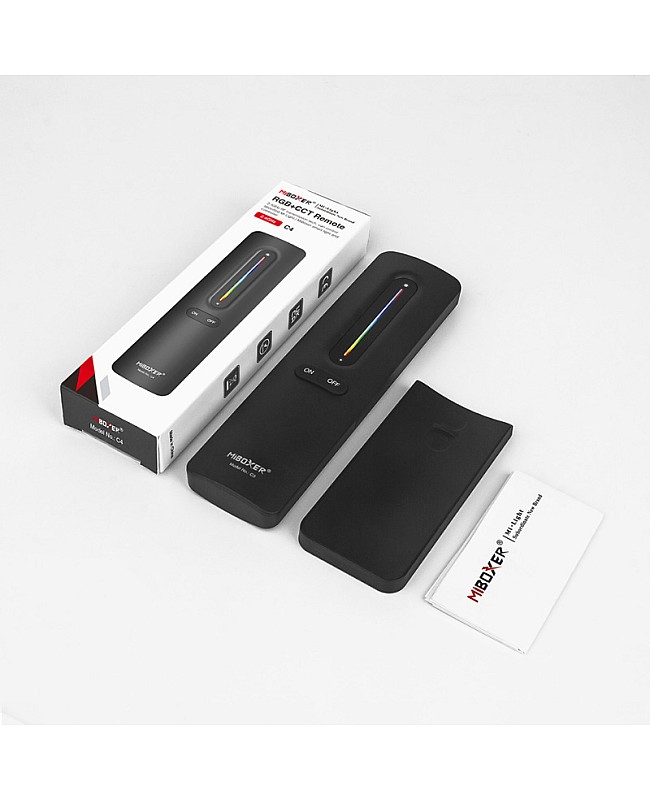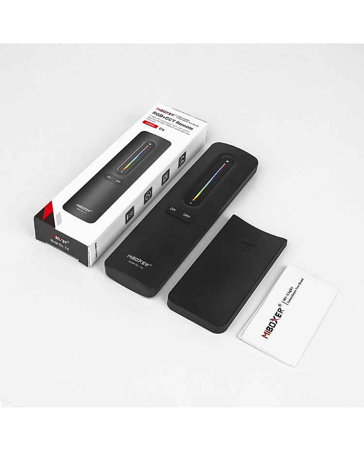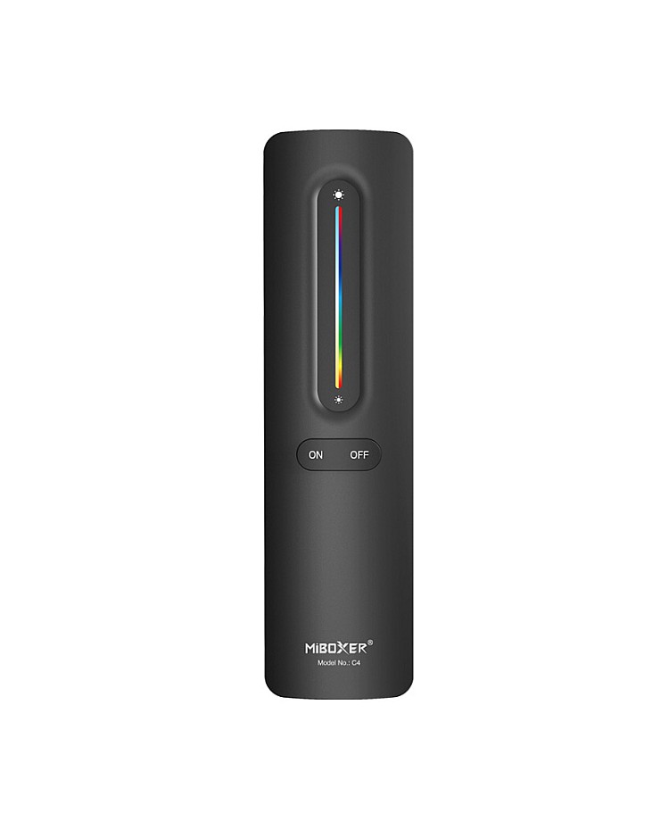 The MiBoxer C4 battery-powered light remotes are designed for all regular LED lights, including single-color, dual-white, RGB, RGBW, and RGB+CCT models. They can work with MiBoxer and Mi-Light 2.4G series products to adjust the brightness, color temperature, and colors. It utilizes 2.4G wireless transmission technology for fast transmission speeds, good stability, and strong anti-interference capabilities. It supports matching multiple devices and can control multiple devices simultaneously. It comes with a magnetic mounting base, which allows the remote control to be conveniently taken out and put back, preventing loss. You can use the Mi Light remote to adjust lighting in commercial, hotel, and home settings.