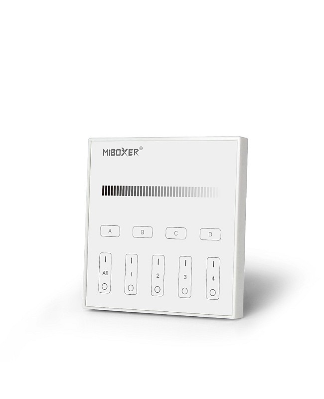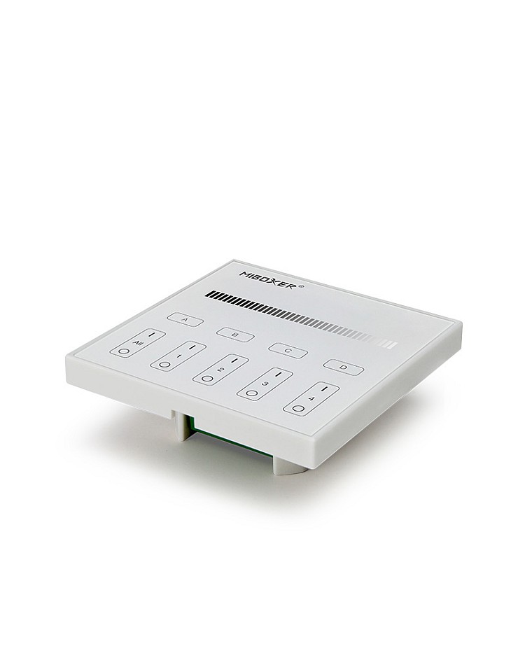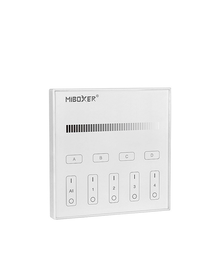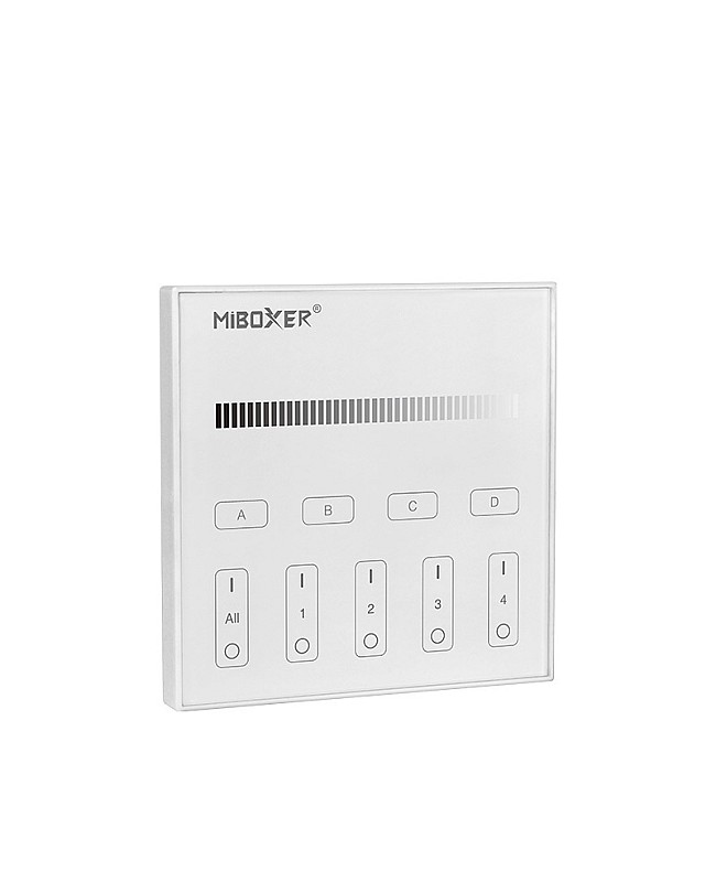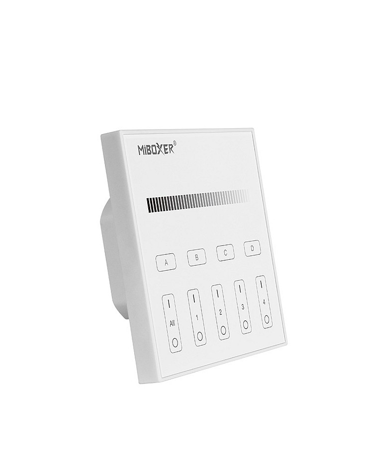 The MiBoxer DP1S DALI DT6 brightness dimming panel has a standard European 86 Type structure, is compatible with DALI standard protocol IEC62386, and supports single address mode, multicast address mode, and broadcast mode. You can control the LED lamp on/off and adjust the brightness. You can set the address via the press button on the backside, unicast address(0-63), multicast address(0-15), broadcast address(255), and scene mode(0-15). The LED display will show you the address clearly. There are 4 scene mode buttons on the DALI touch panel, and you can set the original DALI scene and support four scene modes to be preserved and selected. There are 4 zones of individual control designs, and you can control each zone separately and adjust the brightness from 1% to 100%. The DALI panel has a sensitive, touch-sensitive design and a high-precision capacitive touch screen IC, and the touch screen is very stable. The LED indicator lamp will flash with a different sound when touching the buttons.