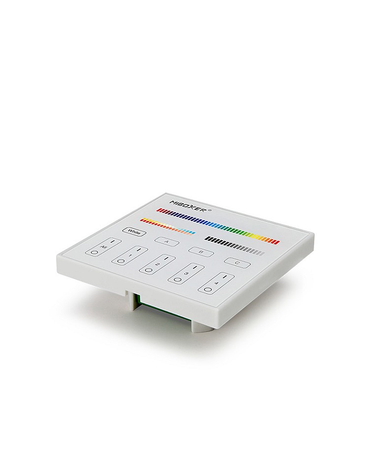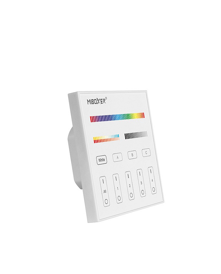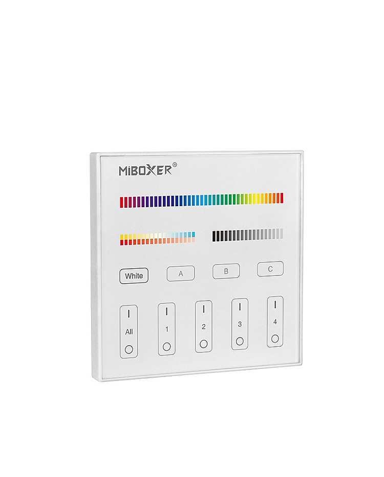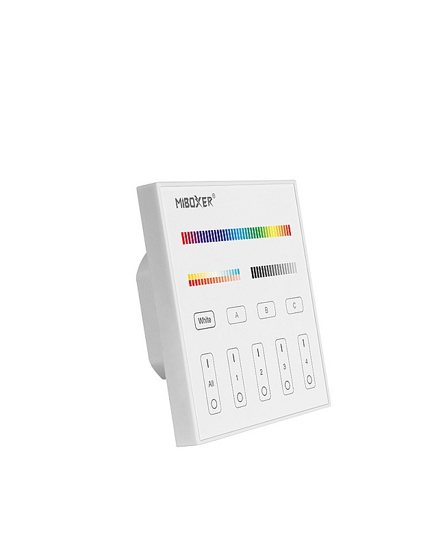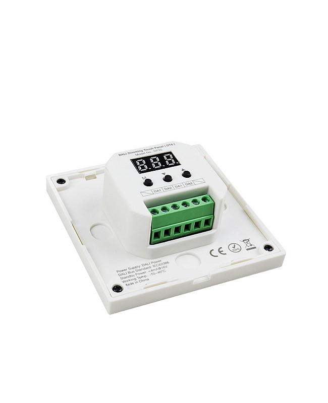The MiBoxer DP3S DALI DT8 3 In 1 dimming panel with sensitive touching panel and standard European 86-type structure with a 3-in-1 function design for RGB, RGBW, and RGB+CCT LED lights, complies with DALI standard protocol and supports DT8 type, you can press the button to set the address and the LED display will show you the address clearly. you can set the unicast address(0-63), multicast address(0-15), broadcast address(255), scene mode(0-15), control type(RGB/RGBW/RGB+CCT). There are 3 buttons on the Dali touch panel to set the scene modes, and you can set the original DALI scene. Press the sliders to set the static color and adjust the color temperature, brightness, and saturation. There are 4 zones designed; you can control each zone separately.