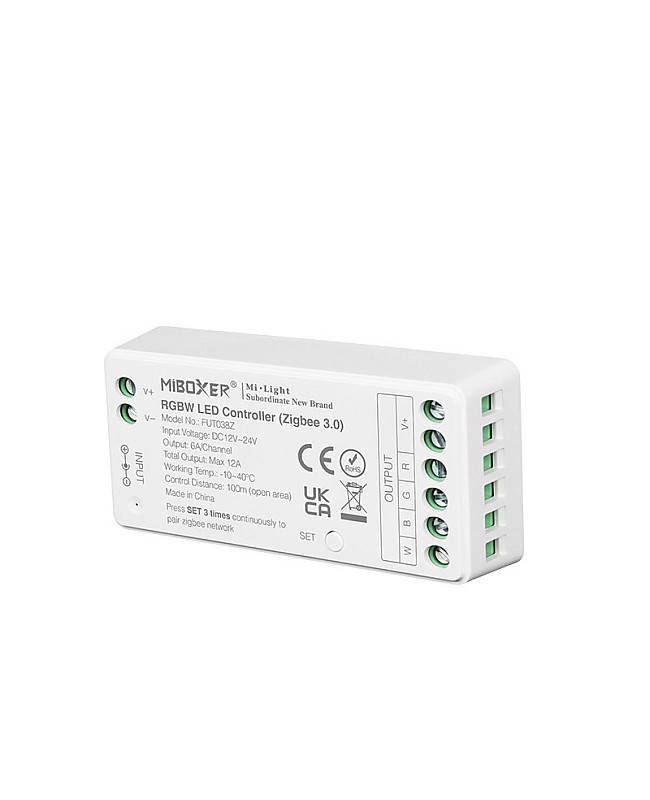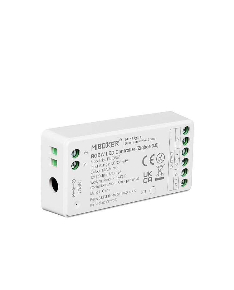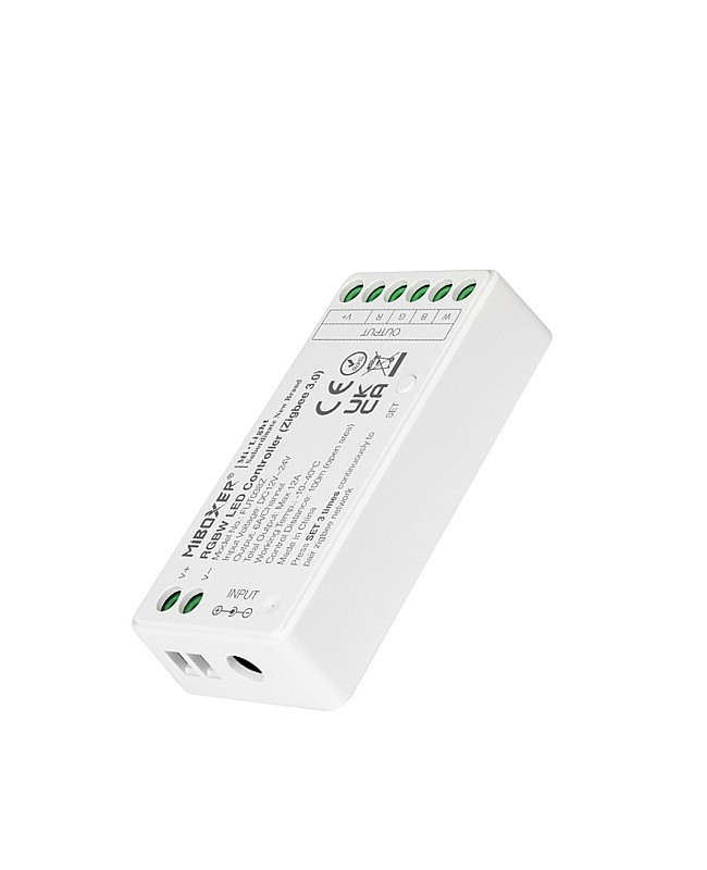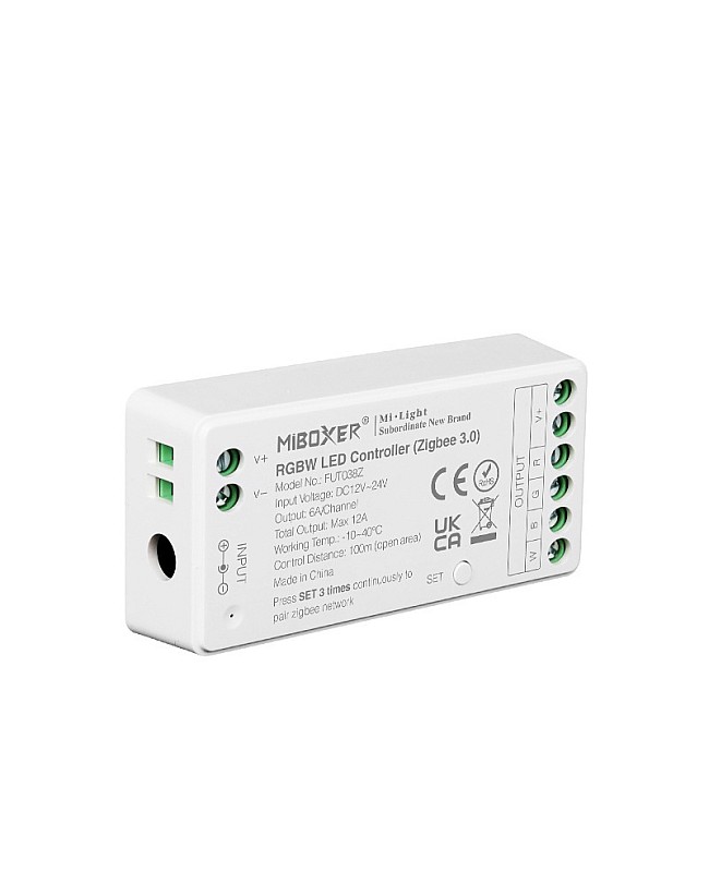 The MiBoxer FUT038Z Zigbee LED controller integrates the Zigbee 3.0 standard protocol, with a small size and lightweight, easy to install and use, and can work with RGBW LED lights. It can be controlled by a Zigbee remote to set the color, adjust the brightness, and saturation. After pairing the Zigbee 3.0 gateway, the MiBoxer RGBW controller can be controlled by a smartphone app and third-party voice commands, and it can work with Amazon Alexa and Google Assistant. You can achieve more functions on the APP like biorhythm, music rhythm, timing, scene customization, device sharing, etc. The Zigbee 3.0 RGBW controller can connect to other Zigbee 3.0 gateways like Philips Hue, IKEA TRADFRI, Amazon Echo Plus, etc.