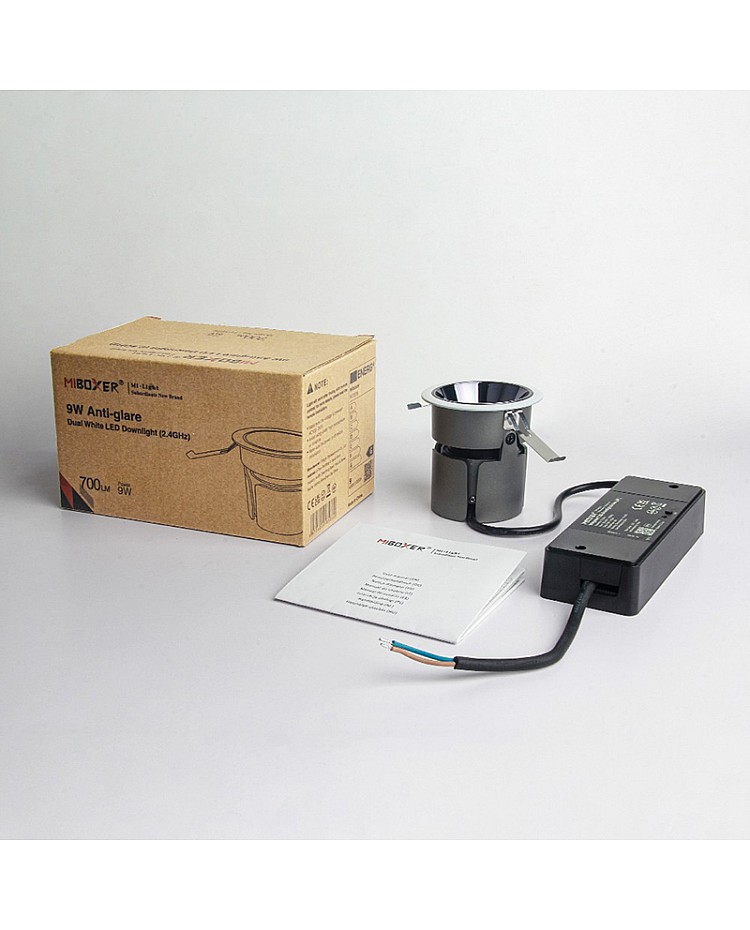 The MiBoxer FUT076 series 9W CCT Black Recessed Downlights are available in 2.4 G and Zigbee 3.0 + 2.4G versions. They can be controlled by a Remote Control, a smartphone app, or voice commands to turn on and off, as well as adjust the brightness and color temperature for various scenes. The Black Down Lights feature a deep plastic enclosure for optimal anti-glare performance, and the lamp body's view angle can be rotated. The 2.4G version integrates 2.4G wireless transmission technology and Zigbee 3.0+2.4G integrates 2.4G wireless and Zigbee 3.0 standard transmission technology with low power consumption, mesh network with strong ability for anti-interference. You can control the color temperature from 2700K warm white to 6500K cool white, and the dimmable range from 0.1% to 100%. The Anti-glare Downlight will transmit the signal from the Remote Control to the same model Lights within 30 meters, and all of the Lights will work in sync. After pairing with 2.4G Gateways or Zigbee 3.0 Gateways, the Tunable White Downlights can be controlled by the Tuya Smart APP or third-party voice commands, such as Amazon Alexa, Google Assistant, and Yandex Alice. Those Lights are non-waterproof, and you can use them to create different lighting scenes and enhance the lighting experience in homes, hotels, restaurants, shopping malls, hospitals, and other settings.