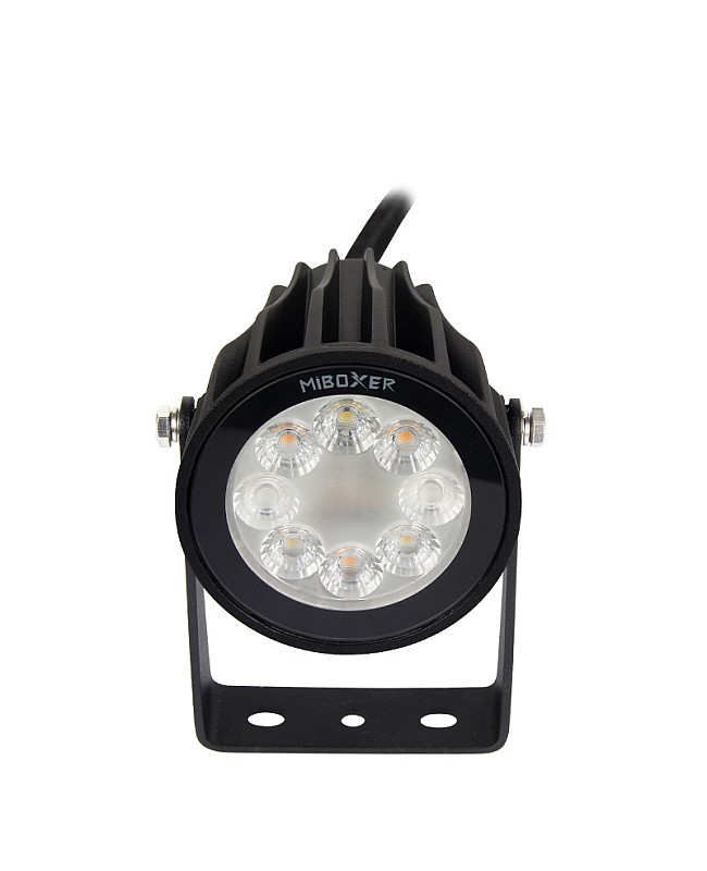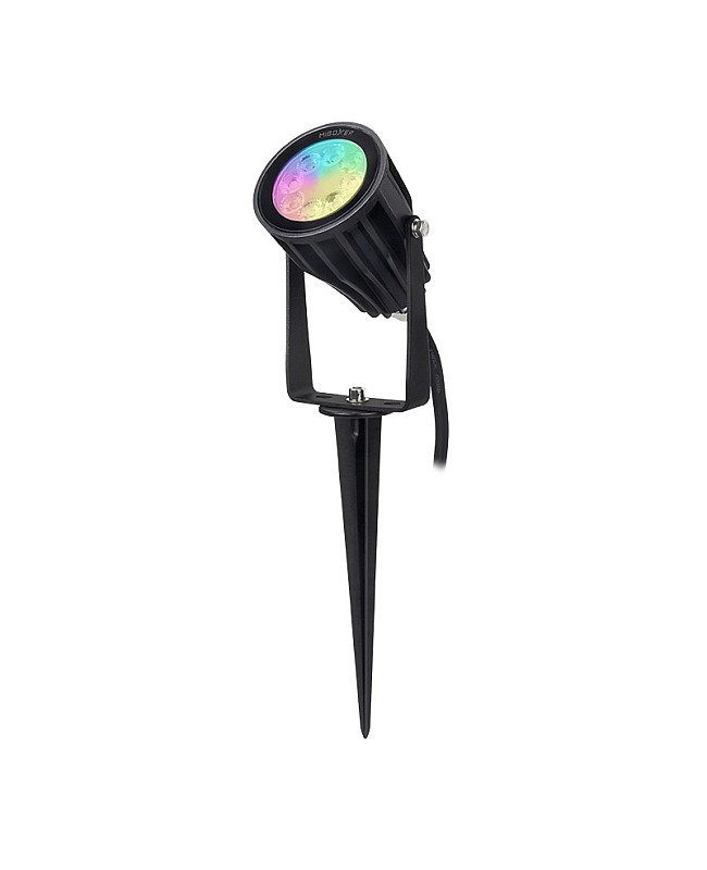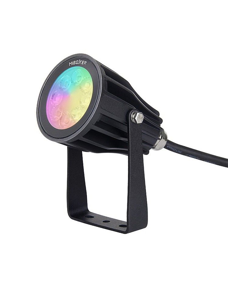 The MiBoxer FUTC04M RGB+CCT smart spot light exterior is designed to create colorful lighting in your garden, yard, lawn, etc. This smart LED lighting system has a range of colors and lighting options that allow you to customize your lighting to fit your needs. 16 million colors change, and color saturation, brightness, and color temperature are adjustable for various scenes. You can use the 2.4G RF Remote Controls, the Smartphone APP, and third-party voice commands to set the color conveniently. The waterproof level is IP66; you can install them for outdoor landscape lighting projects. The smart outdoor spot lights use high-lumen LED chips as the light source for low power consumption and decreased luminance. The anti-dazzling optical lens will deliver scientifically symmetrical and bright light rays. The high-quality power supply ensures working stability and durability, no flickering, and a longer lifespan of over 50,000 hours. The light head can be rotated and adjusted 180° for any beam angle. One light will receive the remote control signal and transmit it to other lights within 30 meters, and different driveway Lamps will work synchronously.