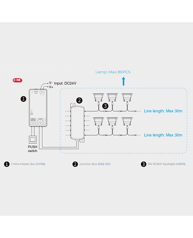 Note: Must be used with MiBoxer HSP3 Two-Wire Control Series Subordinate Lamps