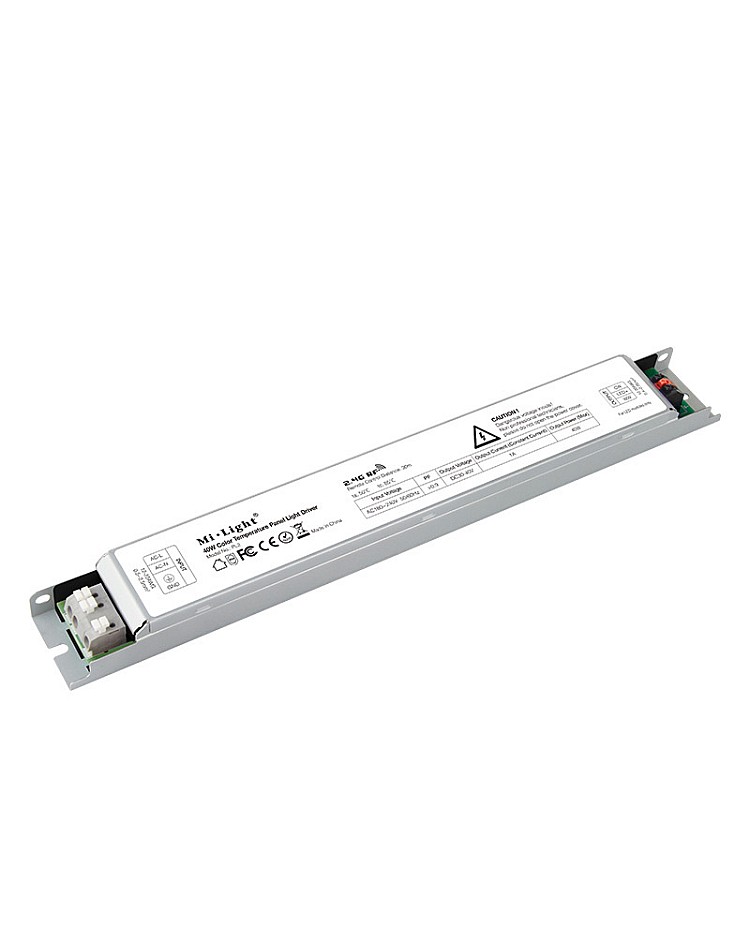 The MiBoxer PL2 dimmable LED driver for the CCT LED strips, with a slim linear size and a galvanized metal shell, has a constant output current of 1A, and a max output power of 40W. The MiBoxer CCT dimming driver adopts a 2.4G transmission technology and can be controlled by 2.4G CCT remote controls to adjust the brightness and color temperature. After adding the WiFi iBox, it can be controlled by a smartphone APP. One CCT dimming LED driver receives the signals from the remote control and transmits them to other drivers within 30 meters. The drivers will work synchronously, with the same dynamic mode, speed, etc. The MiBoxer 40W dimming drivers are non-waterproof and only recommended for indoor applications.
