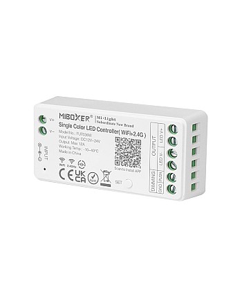 The MiBoxer FUT035W WiFi Bluetooth LED strip lights controller is designed for dual white LED lamps ..