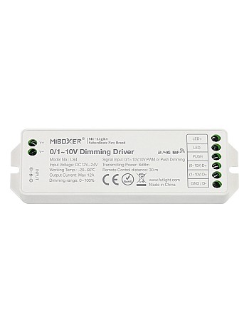 The MiBoxer LS4 0-10V dimmable LED driver supports 0-10V, 1-10V, 10V PWM dimming panels or push butt..