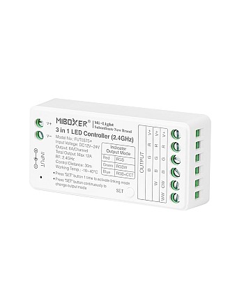 The FUT037S+ Mi Light Controller has 3 in 1 function design for RGB, RGBW, and RGB+CCT LED strips. I..