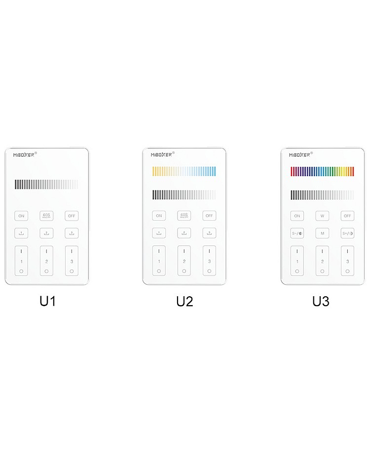 - Model: U1(For Single-color), U2(For CCT), U3(For RGB/RGBW/RGBCCT)