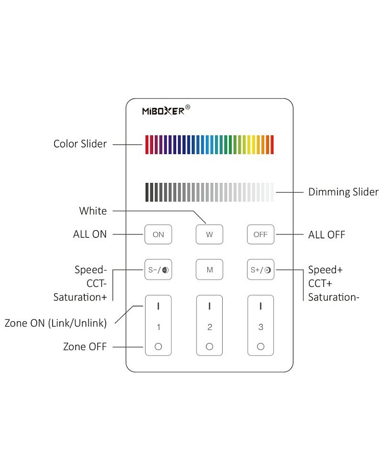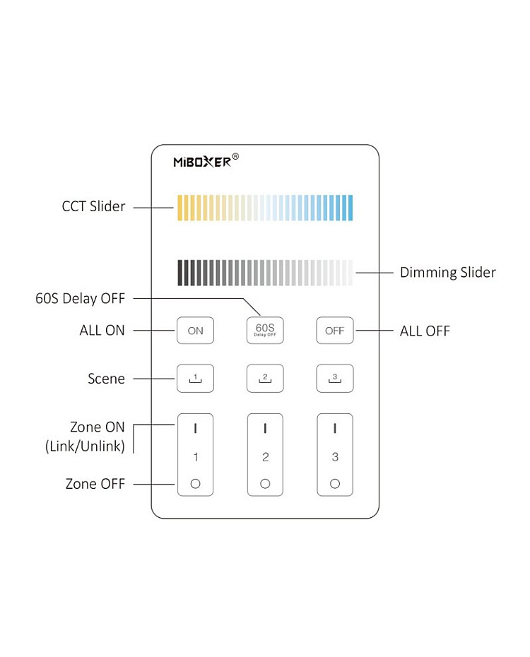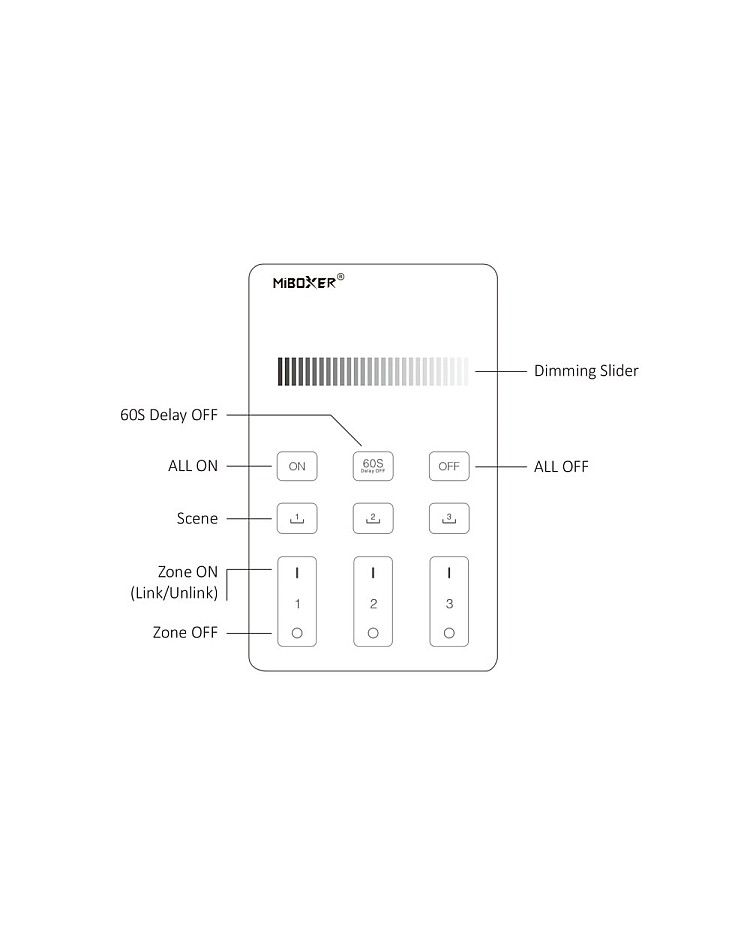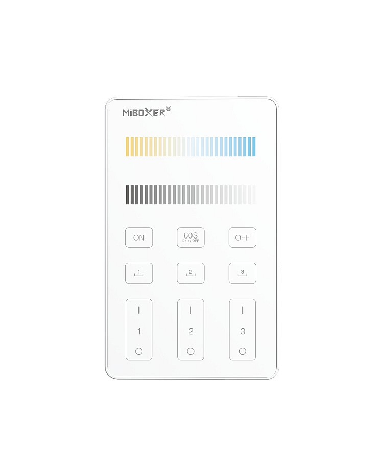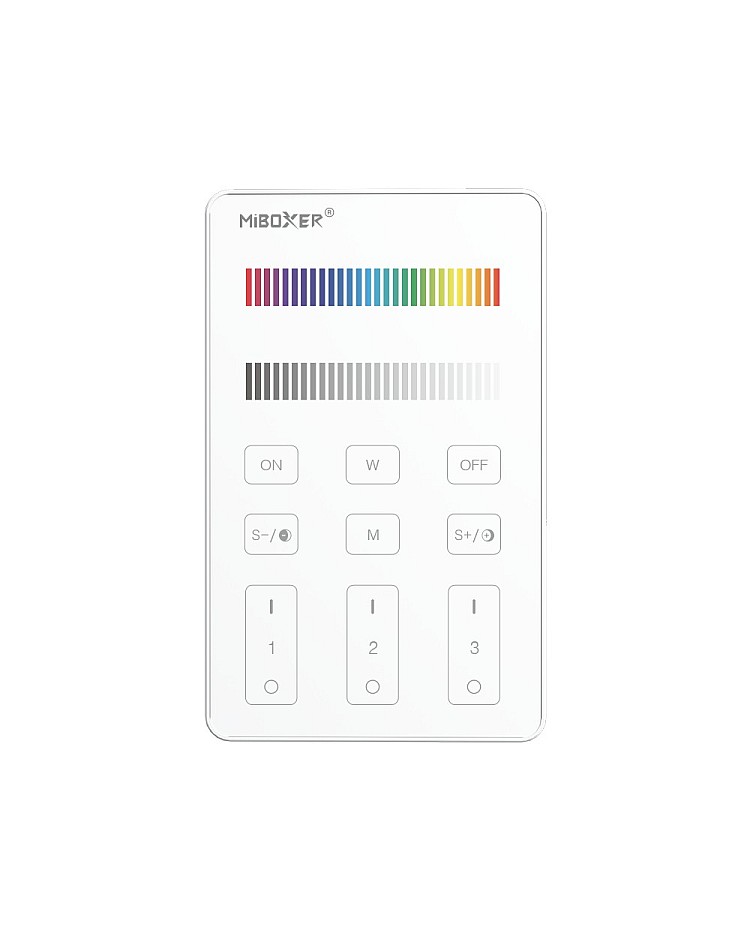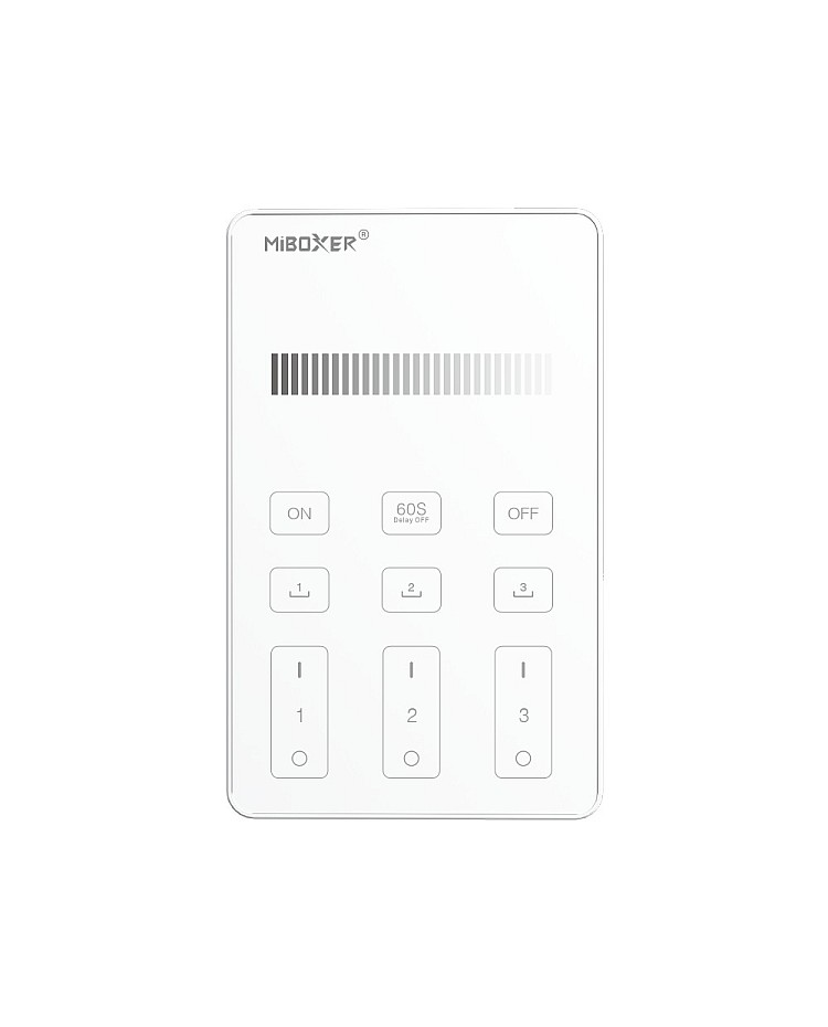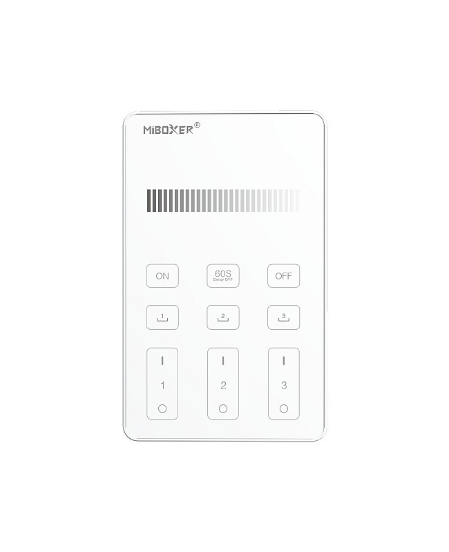 The MiBoxer U1 remote controls are designed for WLED or single-color LED lights. It features a high-precision capacitive touchscreen, ensuring the screen remains very stable and allowing you to conveniently control the lights by touching it. You can touch the screen to turn the device on or off, adjust the brightness, control the lights in groups, and save up to three scenes. The U1 light remote uses a 2.4 GHz RF wireless communication protocol for long-distance control, low power consumption, and high-speed transmission. They can be easily linked to MiBoxer light dimmers.