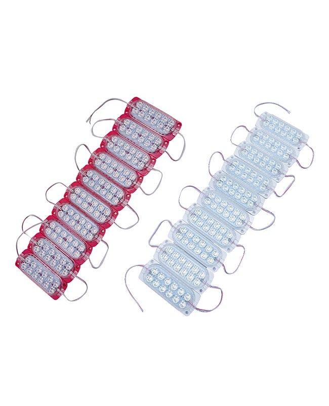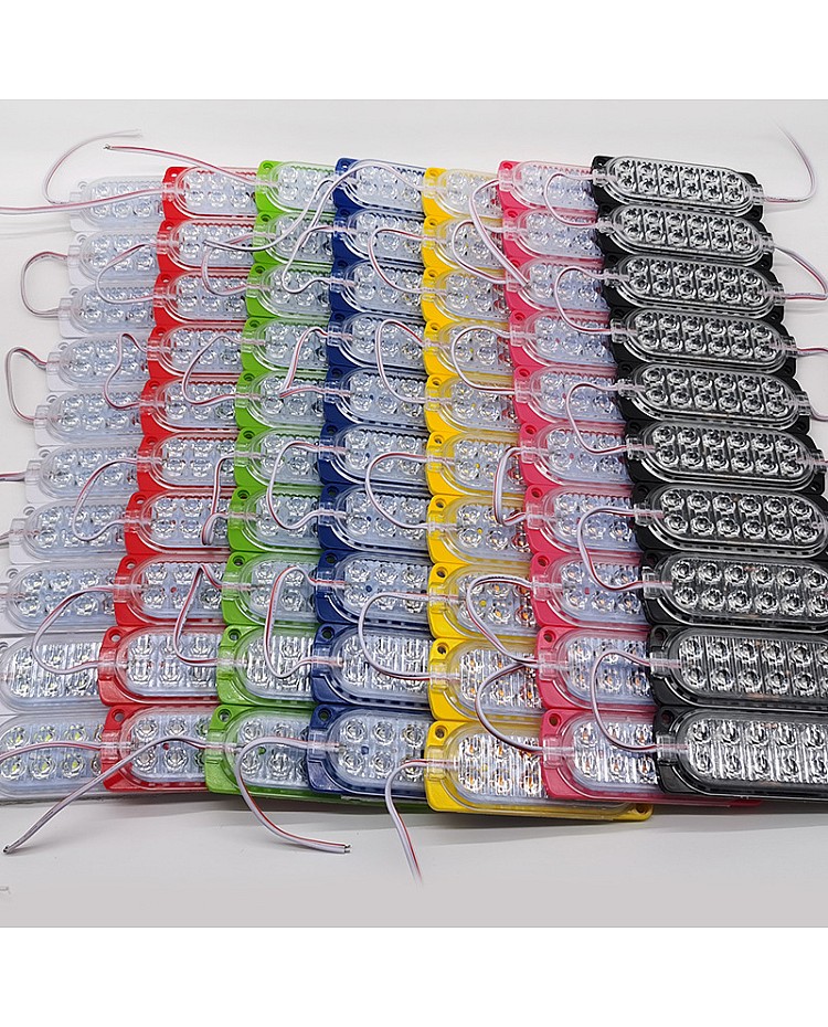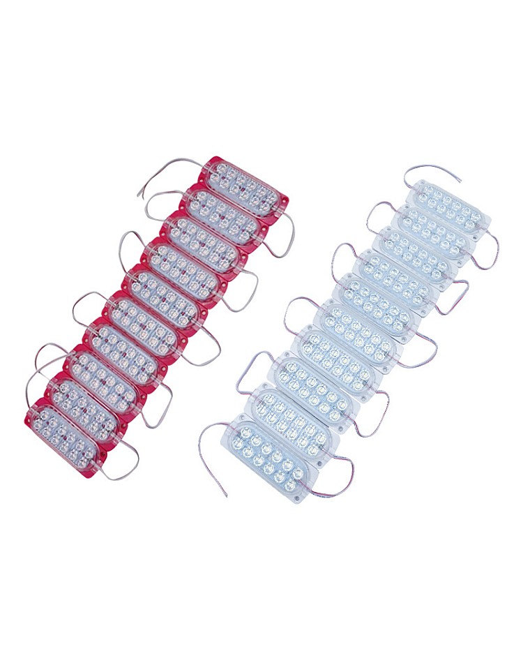 The 2835 module light with Len uses the high-quality 2835 SMD LEDs as the light source. SMD LEDs are fixed on the aluminum board for better heat dissipation, and allow a longer lifespan. The surface of the module Light has a lens for a wide beam angle and anti-glare. The waterproof level can reach IP65, and you can use them for indoor and outdoor applications. The LED module has 10 pieces per group and 20 pieces per pack. The wire length between modules is 10cm; you can cut and reconnect them for your project. Various emitting color products are available: warm white, white, red, green, yellow, pink, and blue. The back of the LED modules has double-sided adhesive tape; you can take off the protective sticker and stick them on the surface of your project. Both sides have screw holes, which are easy to install and maintain. You can use them as emergency, beacon, warning, hazard, signal, flash, and strobe fog lights for cars or trucks. You can also use them as the backlight of lighting boxes, letters, signs, advertising boards, etc.