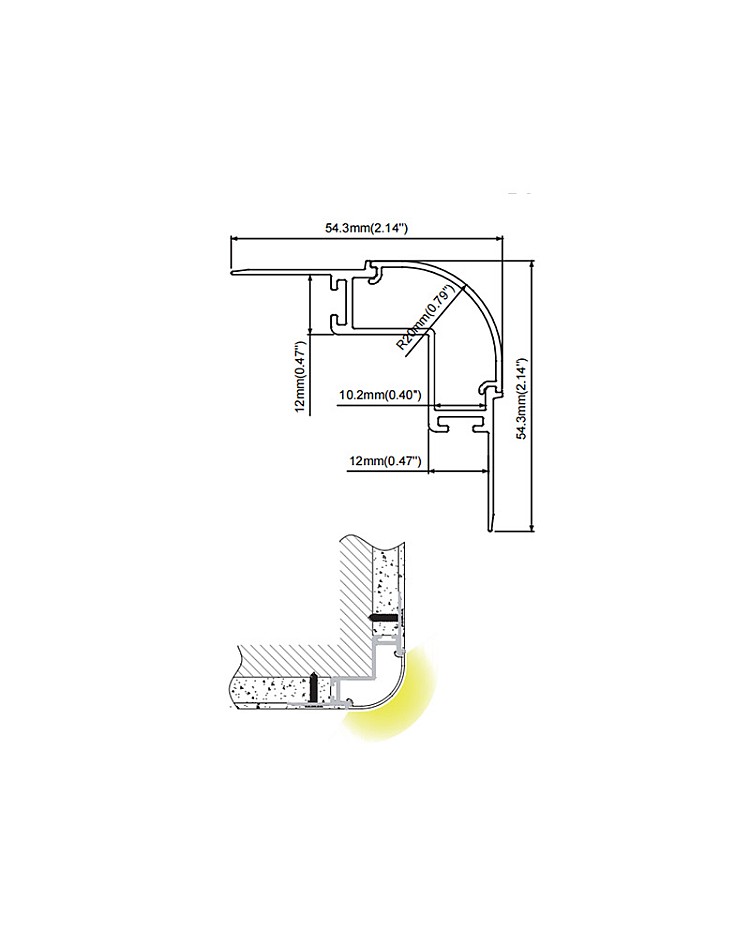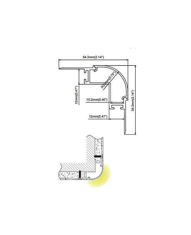The mud-in rounded LED channels are designed for outside corner lighting. They can be flush-mounted with 12mm drywall, providing a clean, integrated look that complements drywall or plaster and eliminating visible edges. The rounded diffusers will deliver soft, uniform light with no harsh hotspots, creating an elegant ambient glow. They can work with 10 mm LED strips to effectively brighten corners, offering a discreet and stylish way to enhance the brightness of these areas. The mud in LED profiles is made of 6063-T5 extruded aluminum alloy, featuring an anodized finish that provides anti-oxidation resistance and long-lasting durability. The standard lengths are 1 m and 2 m, and they can be cut to any size to meet your needs. Two types of diffusers are available: PC diffused covers and PC semi-clear covers. They are made of brand material, are anti-yellowing, and have perfect light distribution. The inner width is 10.22 mm, which allows for a maximum width of flexible strip lights of 10 mm. We recommend installing dual lines of COB LED strips as the light source for consistent line lighting, ensuring uniform illumination without dark areas or light dots. The 180° light couplers are sold separately and can be used to connect two pieces of corner LED channels for long runs. The end caps with and without wire holes are included.
