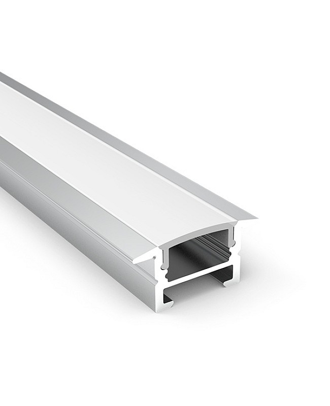 The aluminium LED profiles with flanges easily recess into the wall or ceiling for architectural lighting. The inner width is 12mm, making installing the SMD LED strips or COB strip lights as light sources easy, allowing the maximum width of LED strips to be 12mm. The standard length is 1M and 2M, cuttable and custom lengths are available. Recessed LED profiles are made of 6063-T5 aluminum material with a silver anodized finish for anti-oxidation resistance and a longer lifespan than similar products. There are six types of diffusers available for various lighting transmittance. The PMMA series and PC series are made of imported brand material, are anti-yellowing, and have perfect lighting distribution. End caps with holes included make it easy to connect the LED strips to the power supply to light up. The straight and vertical connectors are sold separately; you can use them to design the lighting project for indoor applications.