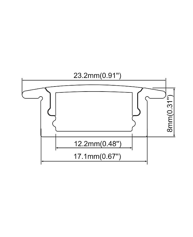 The ALP001-R is one type of affordable, versatile, and slim LED profile featuring thin lips that enable easy recessing into walls, ceilings, furniture, millwork, and other areas where uniform illumination is desired. They are designed for flush mounting into surfaces, ensuring a clean, modern look while enhancing light diffusion and heat dissipation. They are made of high-quality 6063-T5 aluminum material with anodized or powder-coated surface treatments for anti-oxidation resistance and a longer lifespan. Eight types of diffusers are available: PC and PMMA series covers. They are made of brand-imported material, anti-yellowing, and have different transmittance and lighting effects to meet your needs. The stock lengths are 1 m, 2 m, and 3 m, and you can cut them to any desired length. The inner width is 12.2 mm, allowing them to house a maximum width of 12 mm LED strips. You can use our dotless tunable white COB LED strips as the light source and adjust the color temperature for various scenes; the diffused covers ensure seamless, even illumination without hotspots. End caps with and without wire holes are included.