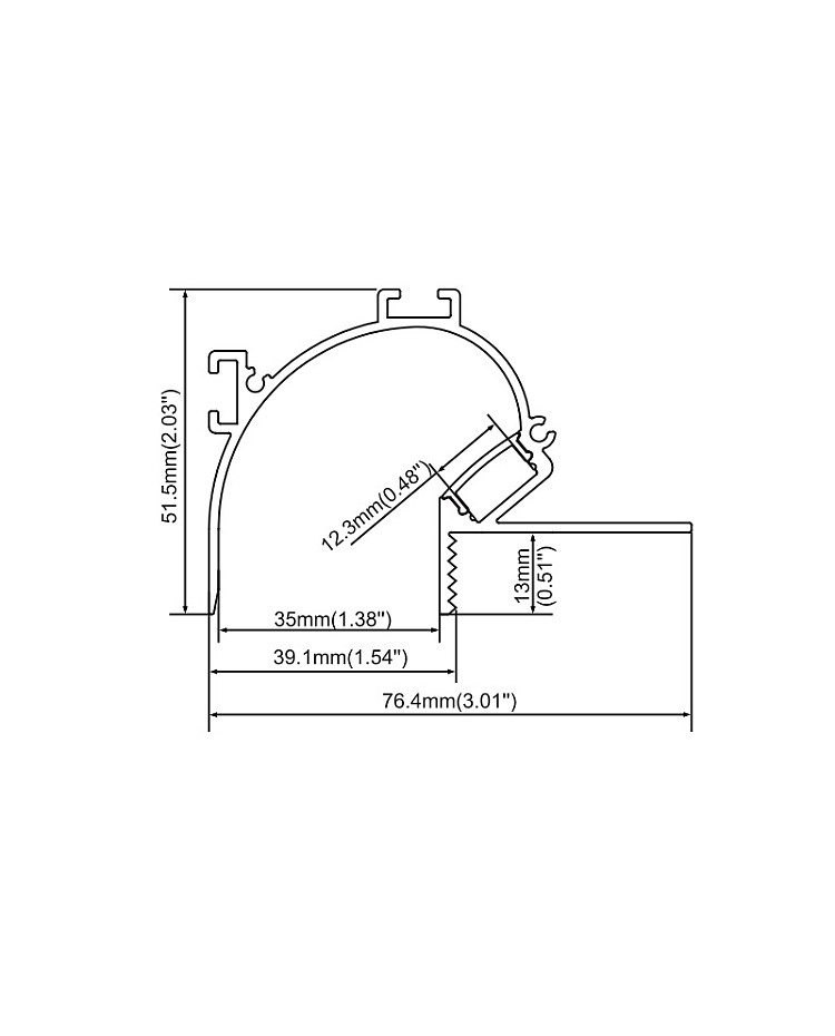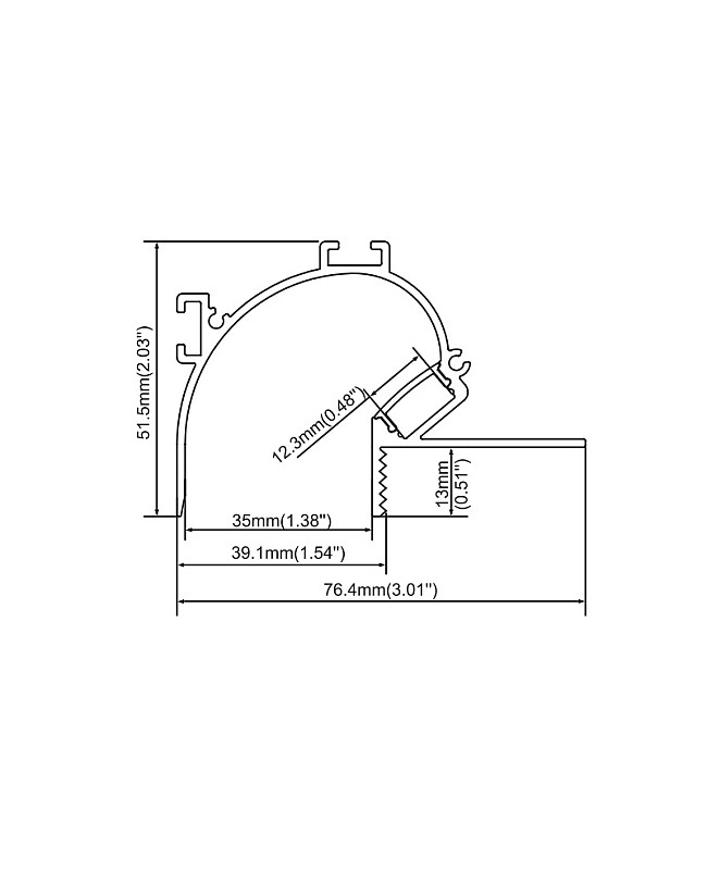 The ALP078-R LED channels are excellent for creating cove lighting on ceilings or walls, providing an even and attractive lighting solution. The light profiles feature a dome design with a white-coated body, allowing them to blend seamlessly with ceilings or walls. They are made of 6063-T5 aluminum material with white-coated surface treatment, anti-oxidation resistance, and a longer lifespan. The stock color is white, and other colors are available for customization. The standard lengths are 1 m and 2 m; custom lengths are also available. Recessed LED channels with a dry-wall design feature a white-coated body, allowing them to blend seamlessly with the surrounding white wall and diffuse light uniformly and smoothly. This indirect lighting is gentle on the eyes, providing anti-glare benefits without harm. They are a unique choice for hotel ceilings or other high-end lighting projects. The inner width is 12.3, allowing a maximum PCB board width of 12 mm. You can install the high-density SMD LED strips and COB LED tapes inside. Only one type of diffuser is available: the PC diffused covers, made of imported material, are anti-yellowing, feature perfect lighting distribution, and provide a soft light output. There are two mounting clip models available: one for walls and one for ceilings, which allow the mounting of the white LED channels at the perimeter of the ceiling against a wall or in the middle of the drywall ceiling.