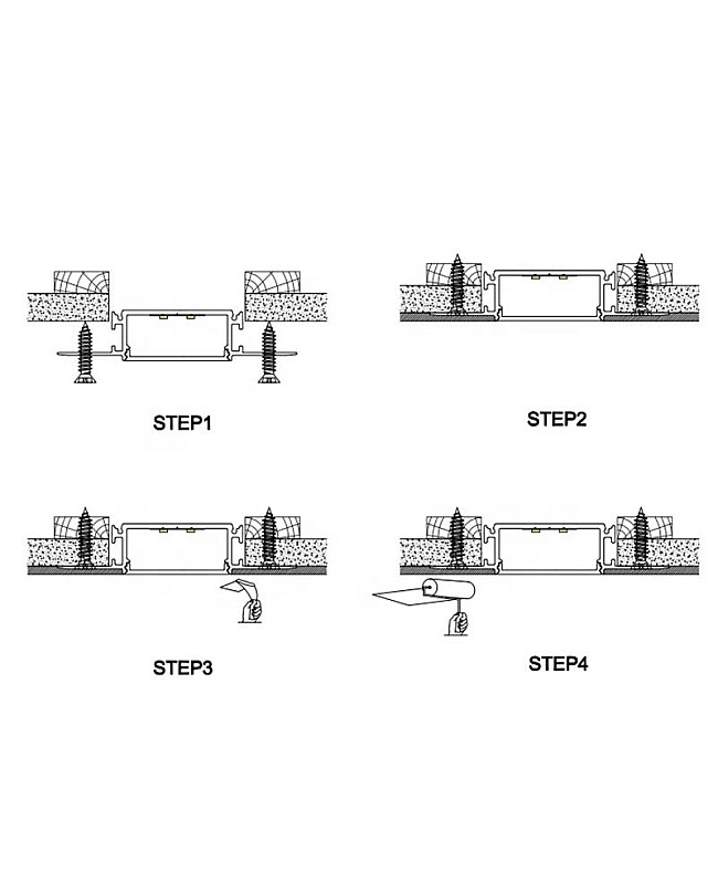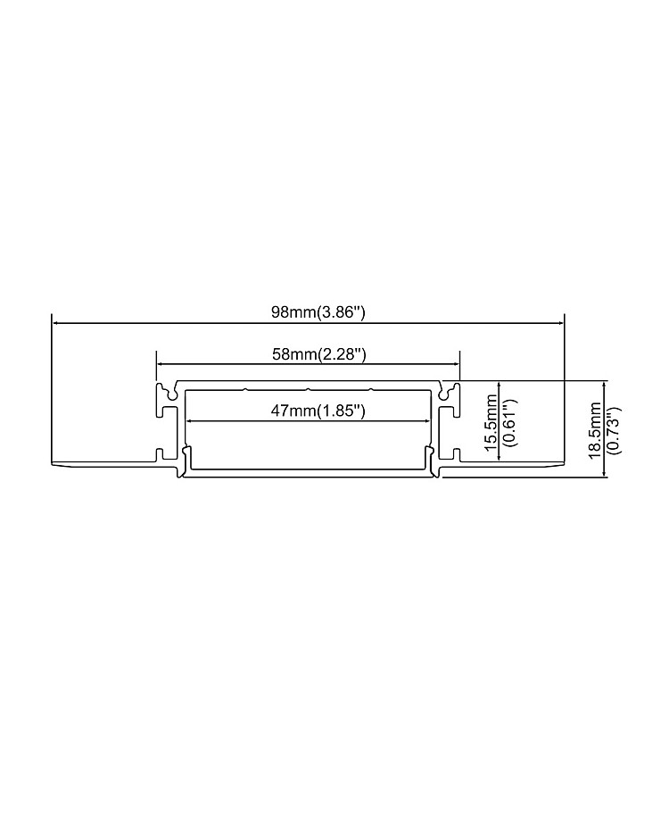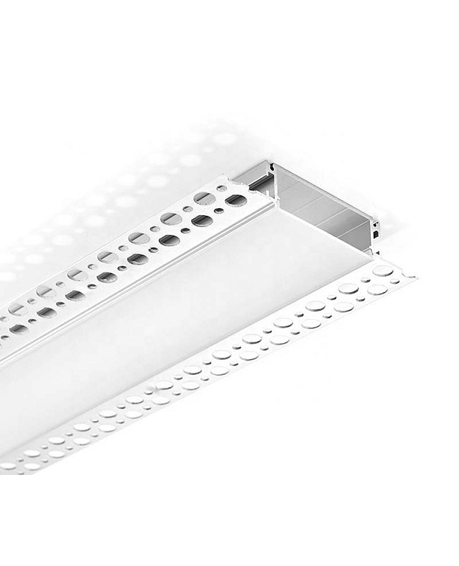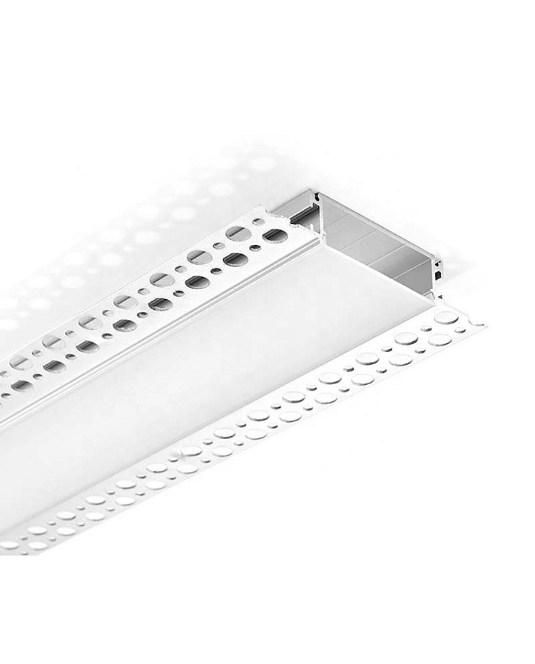 The 3.86-inch LED channels can be seamlessly integrated into 5/8" drywall on walls or ceilings to create a flush, trimless linear lighting that only the light is visible. Perfect for minimalist, modern interiors in residential, commercial, and hospitality projects. The PC diffusers will soften light output, reduce glare, and provide a uniform output, making lighting more pleasant and visually comfortable. The accent light profiles are engineered with high-quality anodized aluminum for enhanced oxidation resistance and a longer lifespan. Additionally, they can function as heat sinks, providing excellent heat dissipation and thereby extending the lifespan of the LEDs. The standard lengths are 1 m and 2 m, and they can be cut to any length. The inner width is 47 mm, allowing for high-output SMD LED strips that deliver powerful and uniform illumination. There is only one type of diffusers available: PC diffused covers, which are made of high-quality material for anti-yellowing, and perfect light distribution. There are three types of connectors and joiners available, which can be used for both angled and straight connections. Aluminum end caps and screws are included for a professional look.