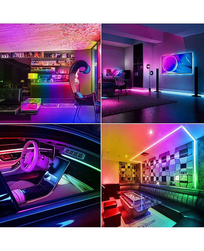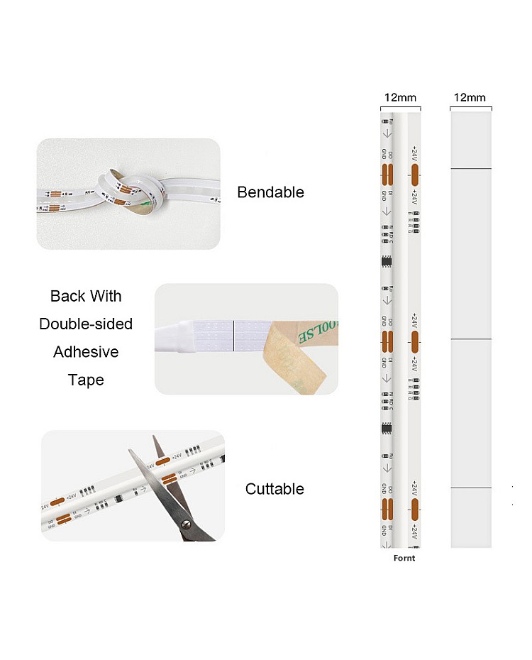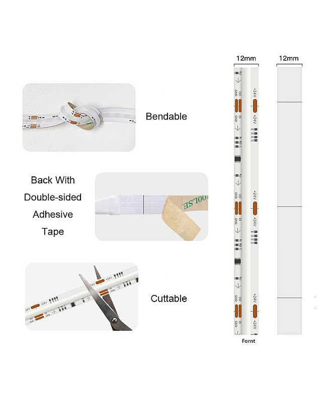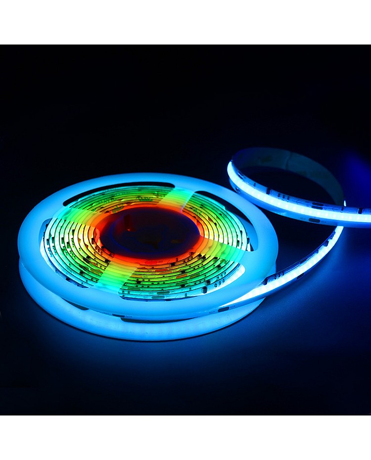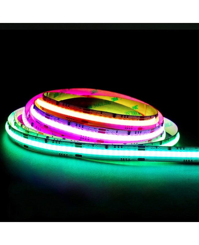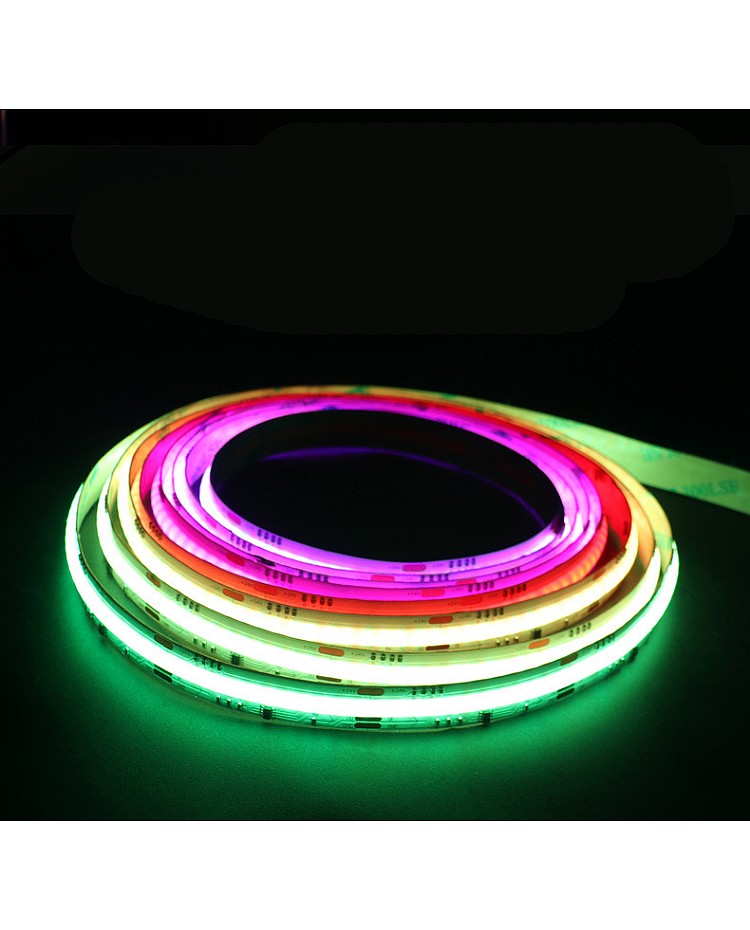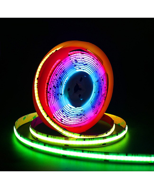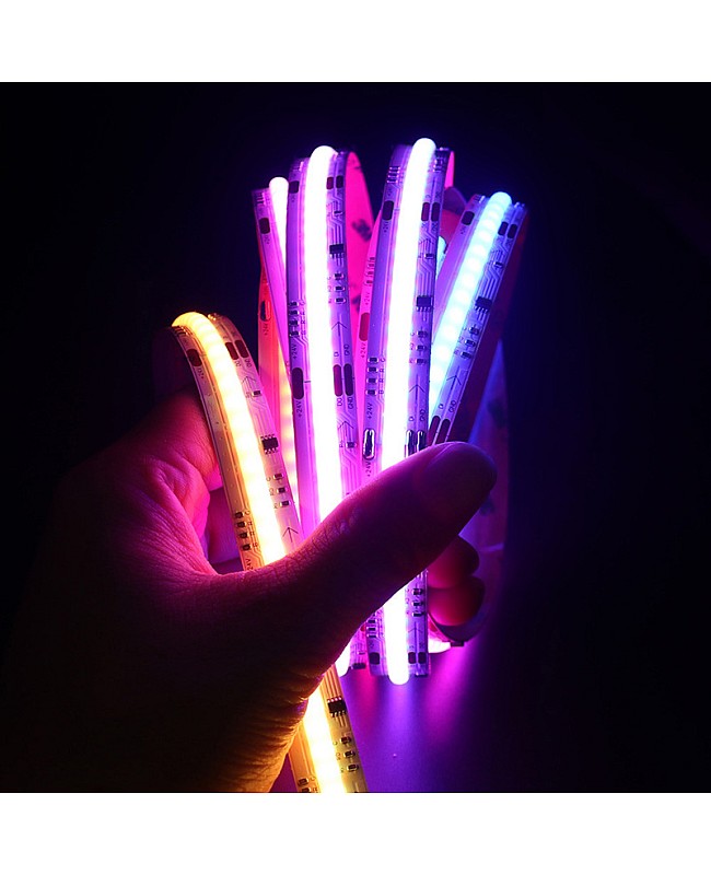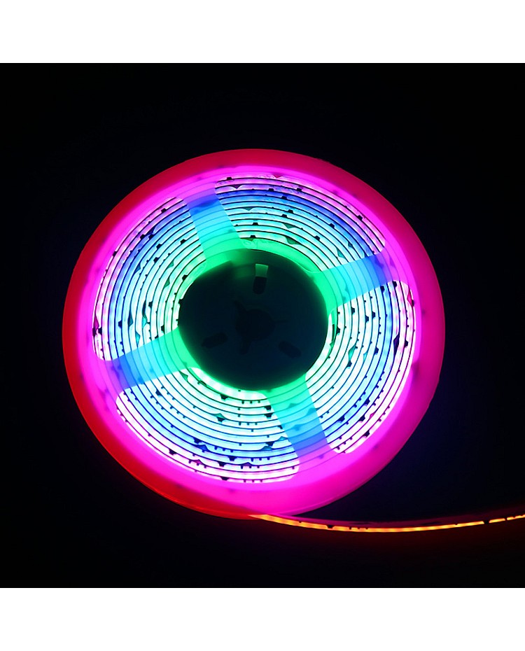 The Addressable Smart Light Strips enable various lighting effects and are an excellent way to add color and mood lighting to your home or business. The Addressable means that you can program it to create various patterns, effects, and animations, allowing you to customize your lighting to match your mood or create a special atmosphere. The width of the PCB board is 12mm, and the reel length is 16.4 ft. The minimum cutting length is 5cm; it can be cut to any length and linked together for even more flexibility. Adopts COB(chip-on-board) technology, 720PCS LED chips mounted on the dual-layer PCB board, flexible and bendable, the high-density LED Chips allow brighter than the traditional SMD LED Strips, no visible light dots, and no dark areas for high-quality color rendering and uniform light emission. Use WS2812B ICs to achieve an addressable function, and one IC controls 36 pieces of LED Chips to create hundreds of amazing lighting effects, such as curtain-up, flowing water, flash, jump, raindrop, etc. This allows for color-changing, dimming, and more intricate lighting designs. It can work with most Pixel Light Controllers, including SP105E, SP106E, SP108E, SP110E, as well as Arduino and Raspberry Pi Controllers. The Magic Color LED Strips come with 3P JST-SM Connectors, which are easy to connect to the Controller to light up. Two waterproof levels of products are available: IP20, which is non-waterproof, and IP67, which features a silicone tube for waterproof protection. You can use the IP20 for indoor projects and IP67 for outdoor applications. The back of the IP20 LED Strips has double-sided adhesive tape. Removing the protector paper from the tape is easy, and sticking it where you want to install it. The Silicone Tube Waterproof products can be installed in a wet or rainy location. With its low power consumption and easy installation, the Smart LED Strips are the perfect way to bring extra color to your life.