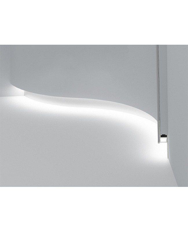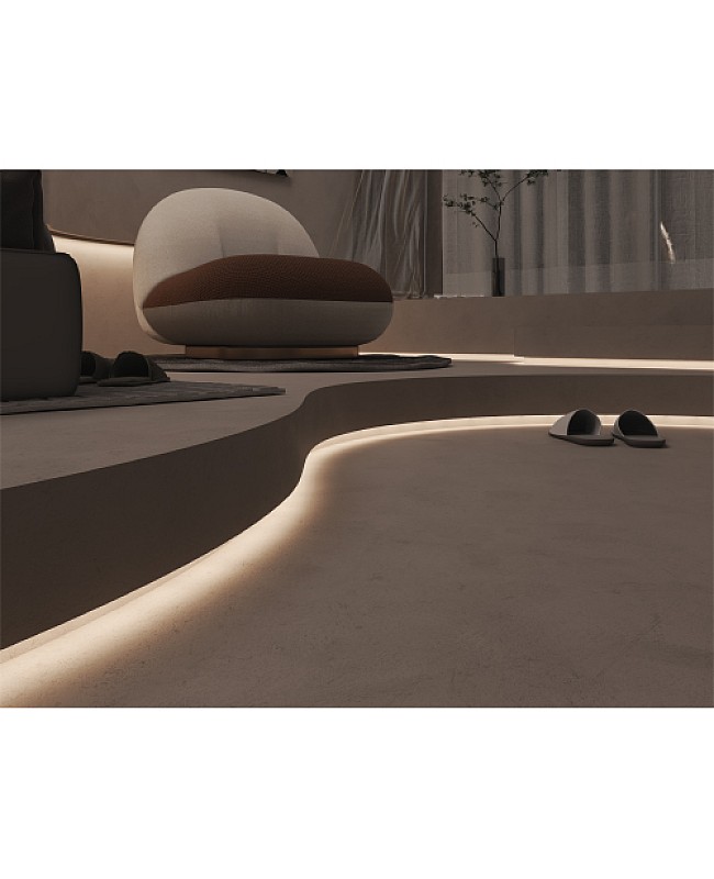The drywall flexible baseboard LED channels feature a side-bending design and are designed for seamless integration into drywall, curved walls, and curved ceilings that require smooth, continuous LED lighting. You can use them to create continuous linear lighting along curved surfaces, providing both functional and aesthetic lighting. Those bending channels can conform to curved surfaces while delivering consistent, high-quality illumination, making them an excellent choice for both residential and commercial applications. The bendable baseboard light channels are made of 6063-T5 extruded aluminum material and feature a silver anodized surface treatment for enhanced oxidation resistance and a longer lifespan. The stock lengths are 1 m and 2 m, and they can be cut to any size to meet your needs. Only one type of silicone diffuser is available: semi-clear, made of high-quality silicone material. The maximum length is 50 meters or 100 meters per roll, designed to diffuse light evenly and allow the creation of long, continuous linear lighting. The inner width of the drywall light channels is 8.2 mm, allowing for a maximum width of zig-zag LED tapes of 8 mm.