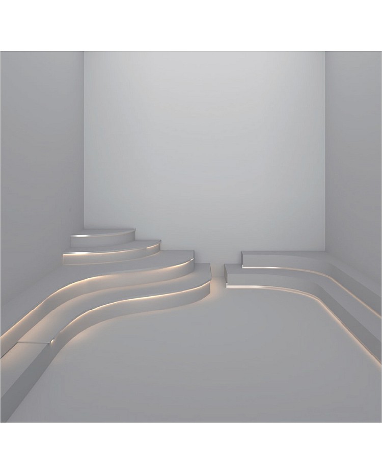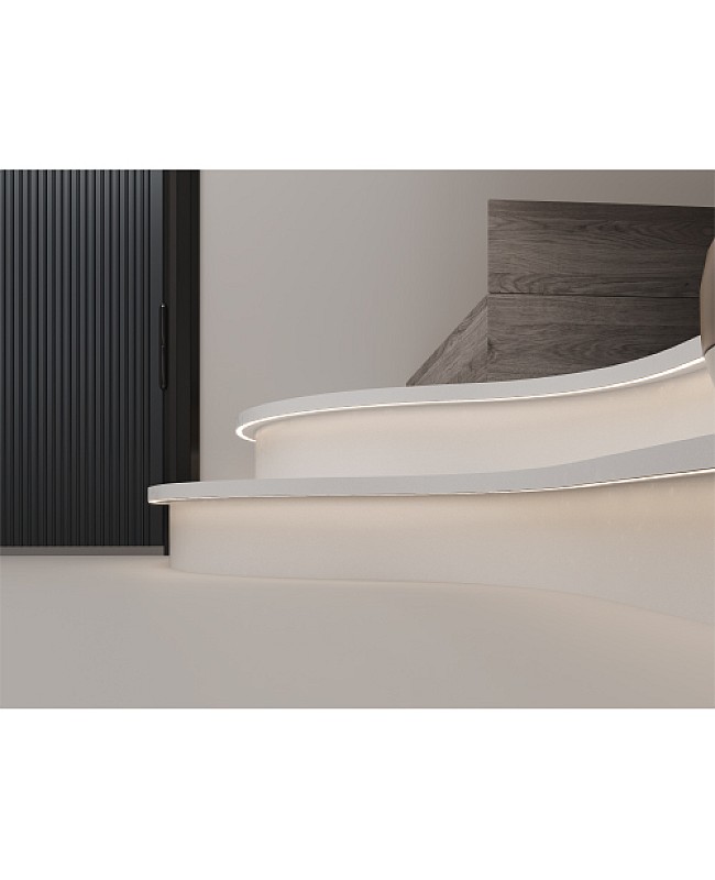 The side-bending LED strip holders are designed for use in curved indirect lighting applications. They can be seamlessly integrated into 1/2 inch plasterboards, enabling smooth, flowing light lines that follow architectural curves, perfect for steps, staircases, platforms, or rounded coves. The aluminum holders are made of 6063-T5 extruded aluminum material, feature a silver anodized surface treatment for enhanced oxidation resistance, and have a longer lifespan. The stock lengths are 1 m and 2 m, and are easily cut to any size for your projects. With a left and right bending feature, the light holder can adapt to various degrees of curvature. The mini bending diameter is 600mm, ensuring a snug fit and uniform illumination along curved surfaces. Only semi-clear silicone diffusers are available, with a maximum length of 100 meters per roll. You can use them for long-distance, continuous lighting without gaps. They are made from high-quality silicone material and will diffuse the lighting evenly for cozy illumination. The inner width is 10.4 mm, and the maximum width of the strip lights is 10 mm.