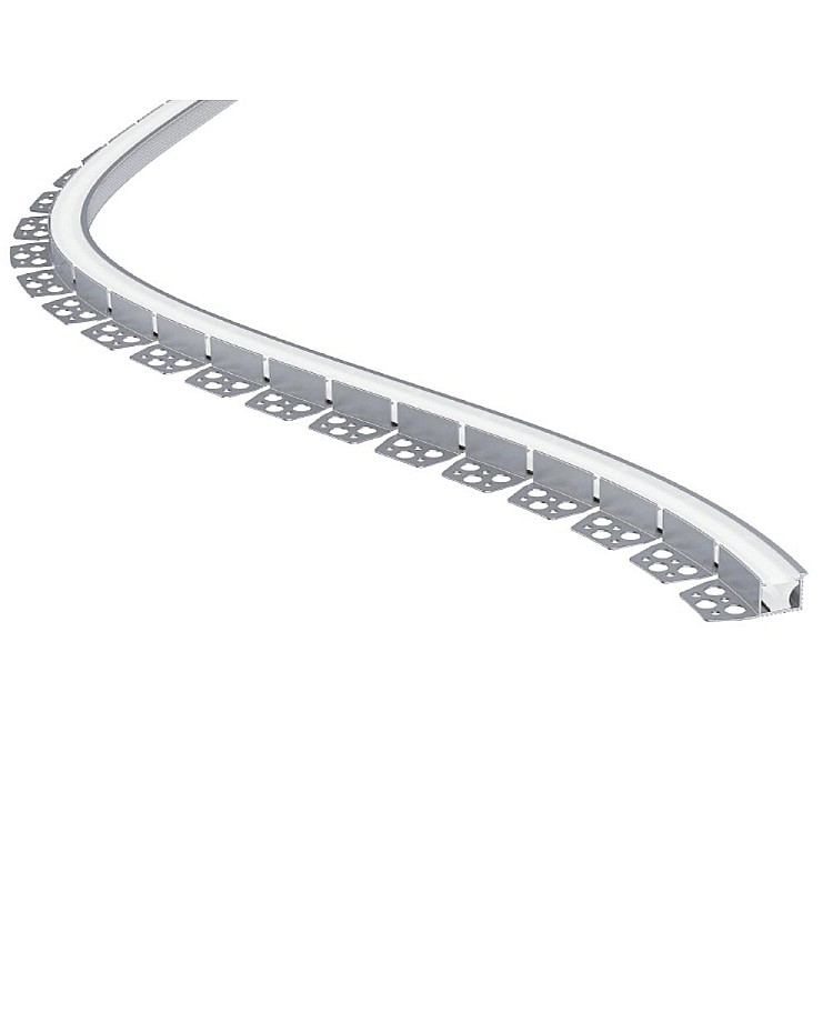 The plaster-in LED strip channels feature a side bendable design and are designed for seamless curved cove lighting in drywall or plasterboard ceilings. With its side-bendable flexibility, it's perfect for creating smooth curves, wave-shaped designs, circular light lines, and custom architectural lighting effects. It comes with silicone diffusers to provide uniform, glare-free illumination that enhances the ambience of residential, commercial, and hospitality spaces. The side bendable LED channels can be seamlessly integrated at the edge of the plasterboards for a clean, modern look without visible edges. They are made from high-quality extruded aluminum material and have a silver anodized finish for anti-oxidation resistance and a longer lifespan. The standard length is 2 meters per piece, and can be cut to any length. The inner width is 11.1 mm, allowing a maximum width of 10 mm for strip lights. You can add our high-density COB strip lights as the light source without hotspots. The silicone diffusers will diffuse the lighting evenly for uniform lighting. The length of the silicone diffuser is 20 meters per roll, and it can be cut to any length. You can use it to create long curved cove lighting. The end caps are included.