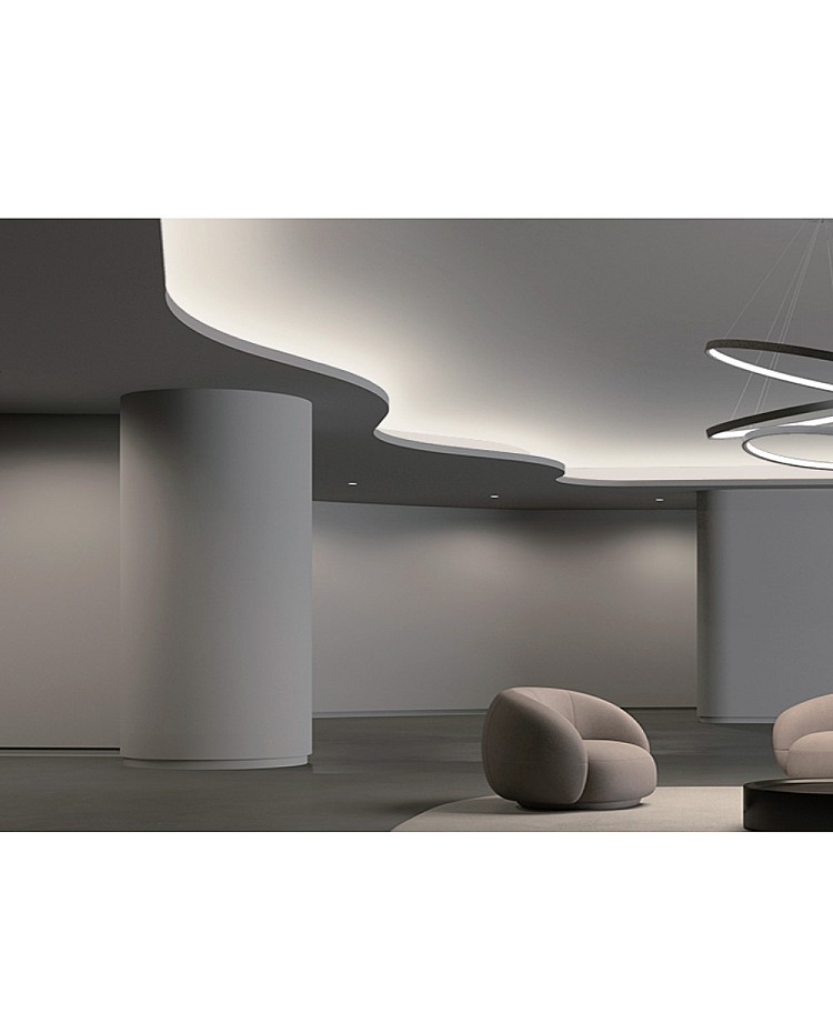- Curved cove lighting: Perfect for soft, indirect illumination in curved ceiling coves, perimeter ceilings, and wave-like architectural designs.