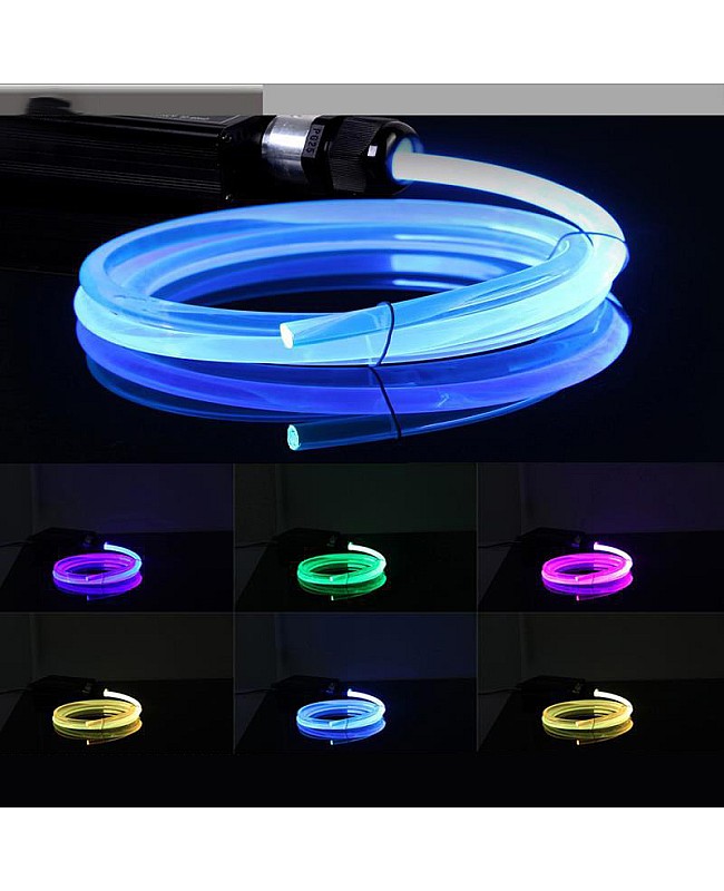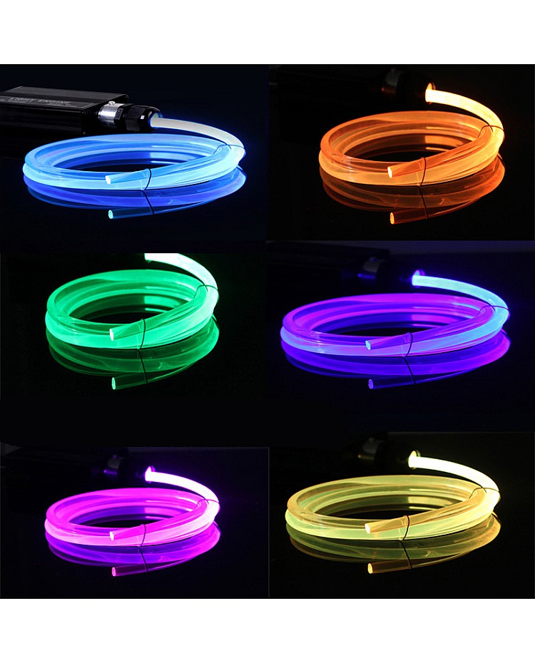 The side glow fiber optic OFC lighting is made of PMMA material, transparent, nice surface and uniform thickness, waterproof and save energy, only transmit light when connect with the light source, the fiber optical Lights virtually no heat and electrical hazard, only transmits visible and soft light so no risk of heat damage and can be applied to heat allergic occasions. No UV rays or IR energy, you can use them for museums, art exhibitions, cars, trucks, vans, pickup trucks, etc. Various diameter products are available from 1.5mm to 12mm, and 5 and 100 meters lengths are available.