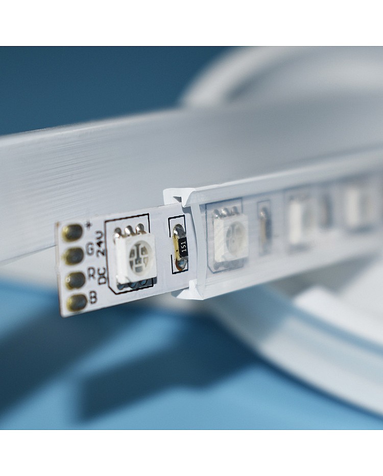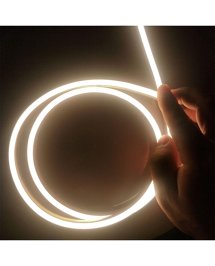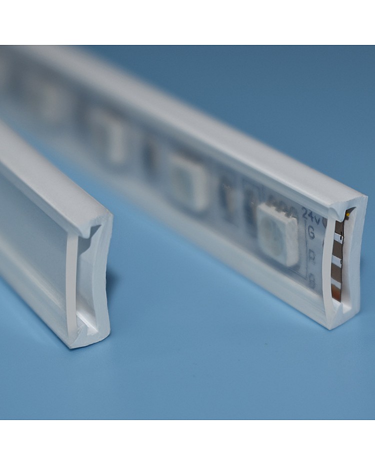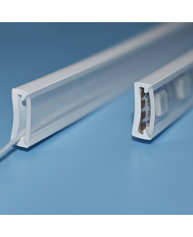 The bendable silicone LED extrusion can accommodate and seal 10mm LED strips, providing IP67-level waterproofing and making it ideal for adding lighting in wet environments or outdoors. The flexibility feature allows them to be bent and shaped for custom lighting. They are made of high-quality silicone material, which is flexible, bendable, and anti-yellowing, with a light transmittance of up to 95%. Additionally, they exhibit resistance to both low and high temperatures. The standard length is 5 meters per roll, with a maximum length of 100 meters per roll. You can easily cut to your desired length. The inner width is 11mm, allowing for a maximum width of 11mm for LED strips. There is a rope in the LED extrusion. Tie a string around the LED light and pass it through the silicone extrusion. Use silicone glue to seal the end caps, completing the installation. The IP rating is up to IP67, allowing the use of these waterproof LED strips in wet environments or outdoors. You can use them in bathrooms, kitchens, yards, gardens, and other outdoor areas. The silicone mounting clips and end caps (with or without wire holes) are included.