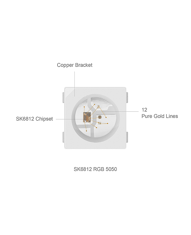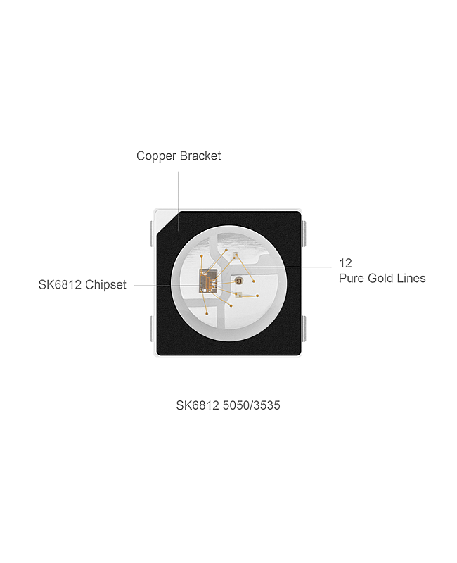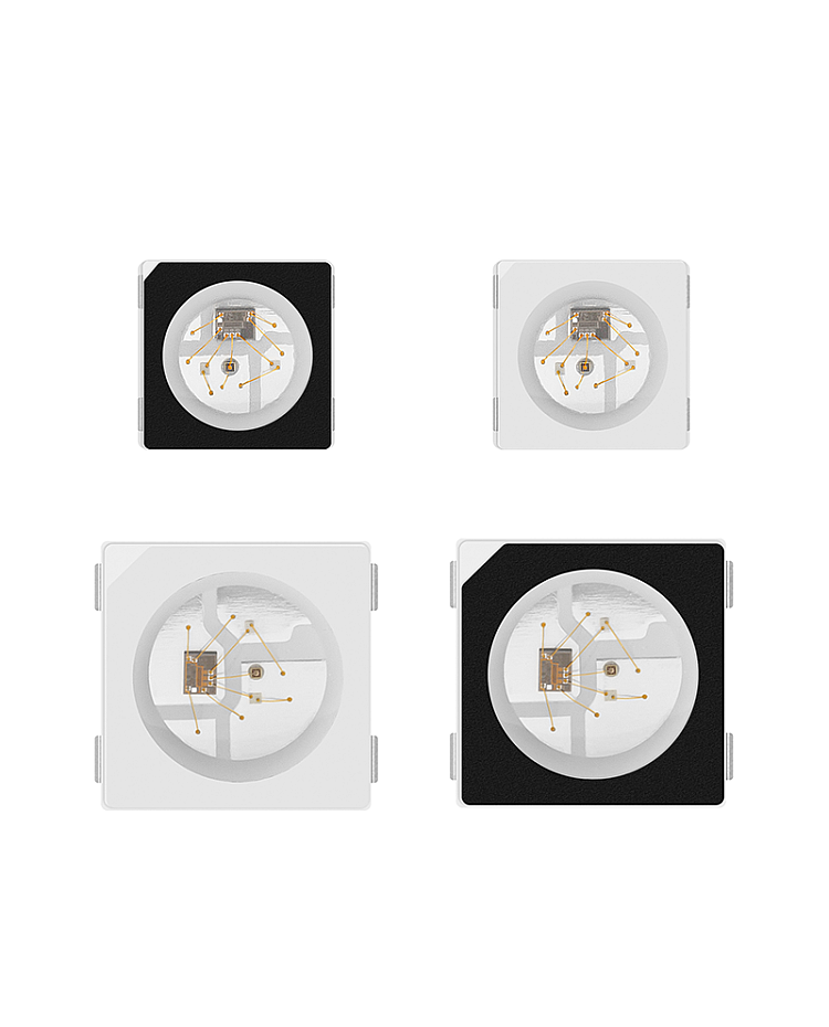 The SK6812 addressable RGB SMD LEDs are available in two types: 5050 and 3535. Both have built-in SK6812 ICs; you can choose a different surface color, black or white. Various quality LEDs per pack are available: 10PCS, 100PCS, and 200PCS. You can use those LEDs with ICs to replace the broken LEDs on your individually addressable LED strip lights or for DIY lighting projects.