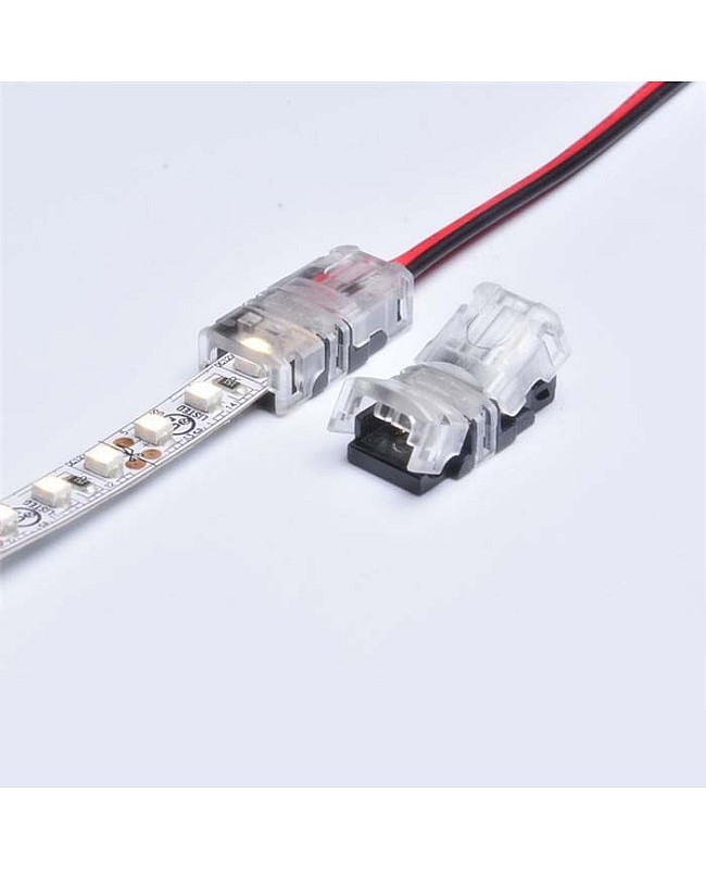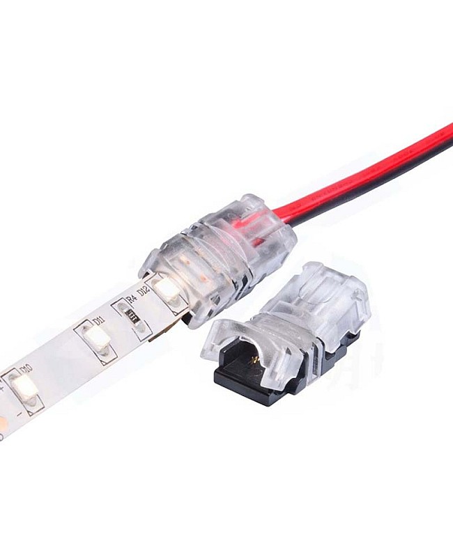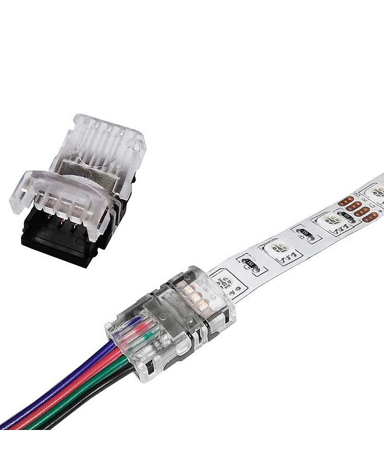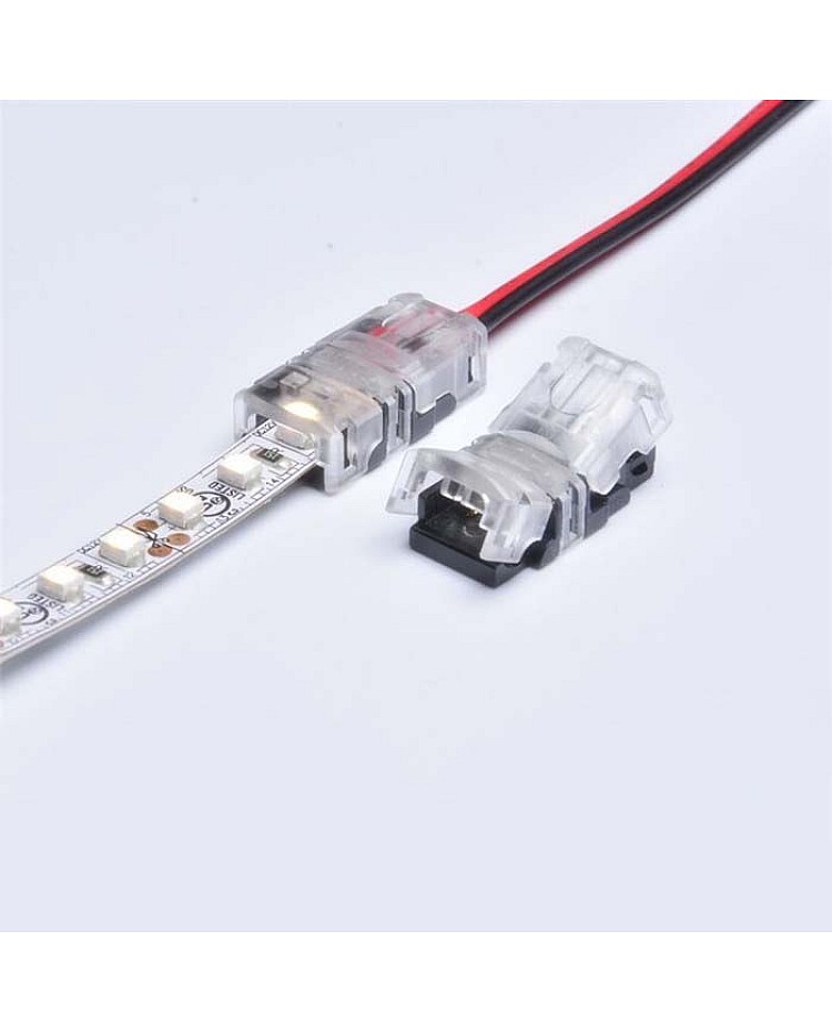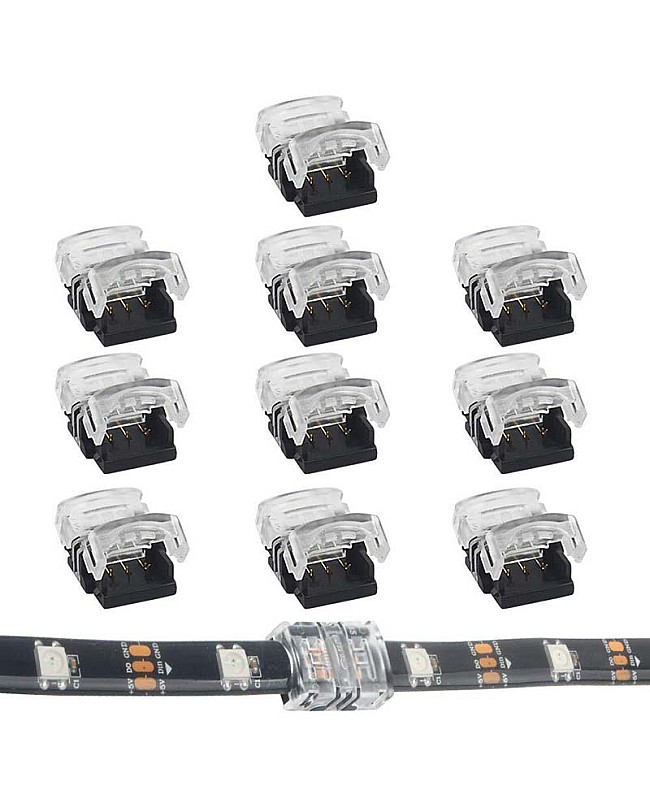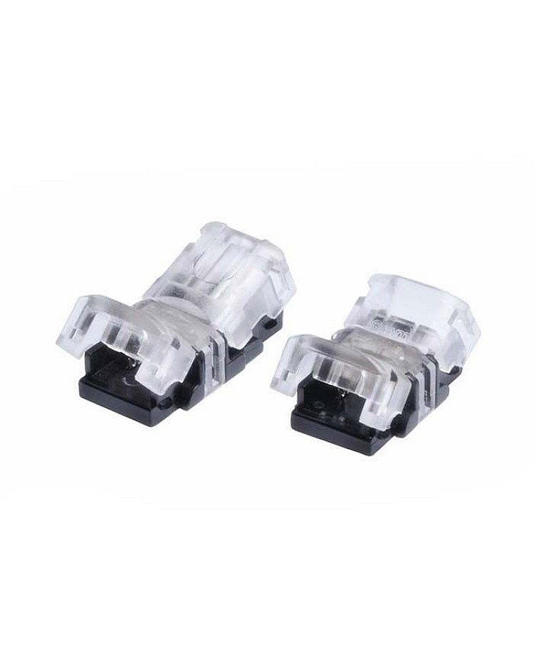 The solderless light connectors with snap down design, various width products and pins available, you can choose the 5mm, 8mm, 10mm and 12mm, about the pins number, you can select 2Pins for single color LED strips, 3 Pins for tunable white LED strip lights, 4Pins for RGB strip lights, 5 Pins for the RGBW LED light strips and 6 Pins for RGB+CCT strip lights. there are two types of solderless LED connectors available, board to board or board to wires, you can use the snap down LED connectors to reconnect the LED strips together or connect the LED strips with the cables, easy to install and use, no need for extra tools. the IP Rating is IP20, non-waterproof, so only recommend work indoor.