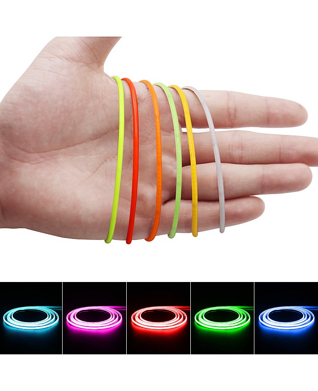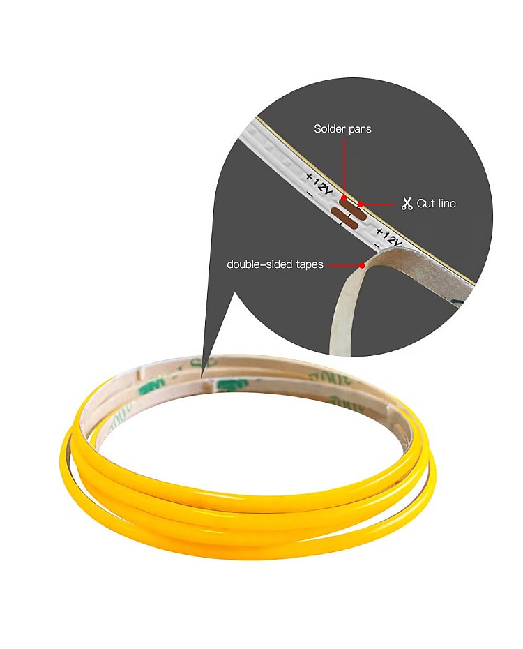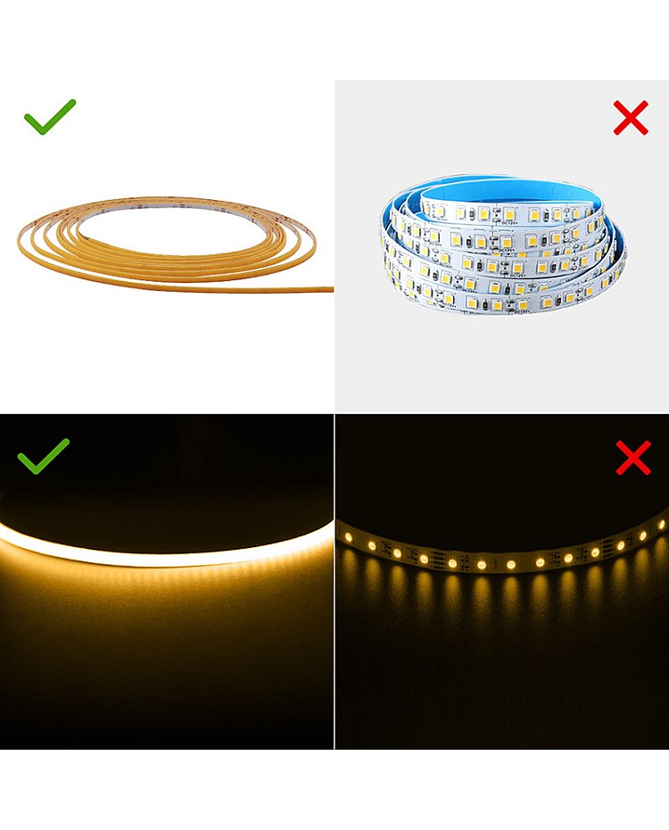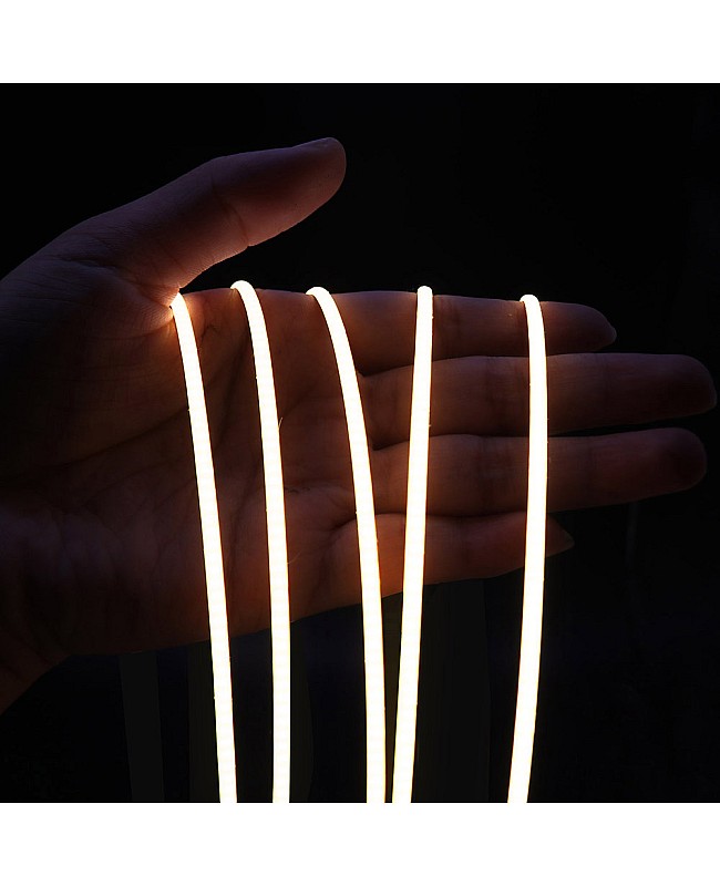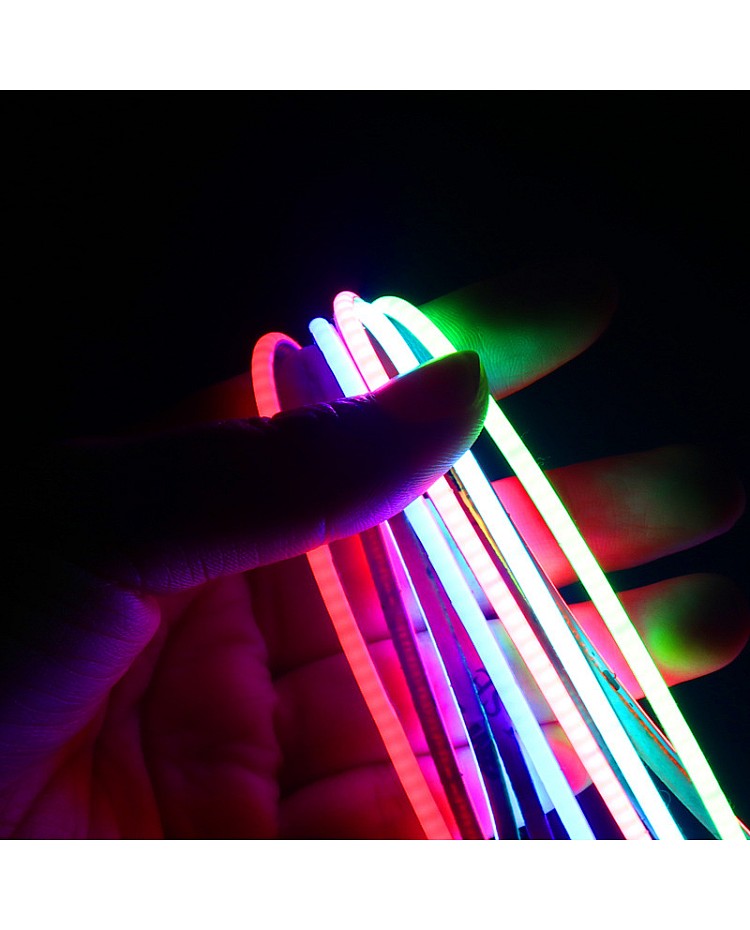 The super-narrow COB LED stripe utilizes advanced chip-on-board (COB) technology for seamless, uniform illumination. The ultra-thin 2.7mm width makes them an excellent choice for indoor applications where space is limited, particularly in tight corners and confined areas. The LED stripe light is only 2.7mm wide and features a high-density LED design, making it easy to install in tight spaces and hard-to-reach areas. The high CRI of 90Ra, combined with high brightness, uniform light emission, and no visible light dots, ensures excellent efficiency and color consistency, without the need for an extra light diffuser. The minimum cuttable length is 25mm, making it easy to customize the length for any project. The dimmable feature also allows them to be connected to light dimmers or dimmable LED drivers, making it easy to adjust the brightness as needed. It offers many color options, including 3000K warm white, 4000K natural white, 6500K cool white, as well as blue, red, green, and pink. It is perfect for adding lighting under cabinets, in coves, on walls, ceilings, furniture, and even cars. There are three voltage options available. You can take DC12V, DC5V, and DC3.7V. Batteries can power the 3.7V and 5V ones.