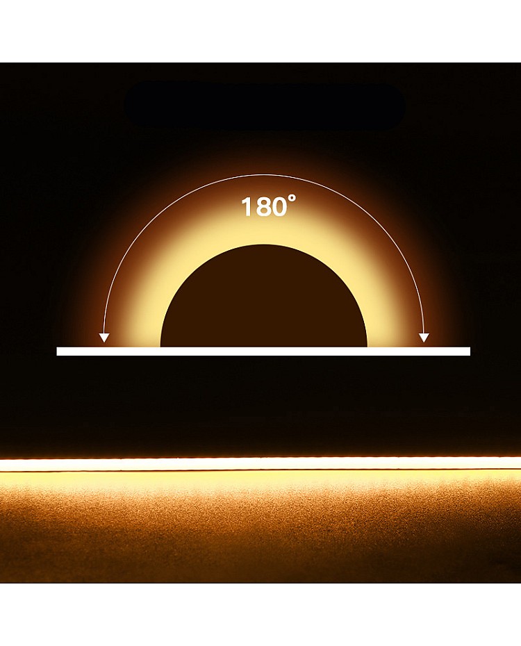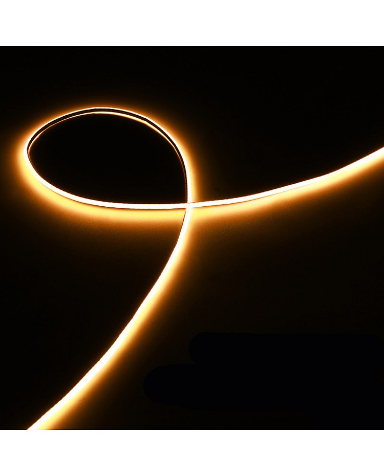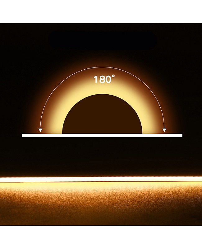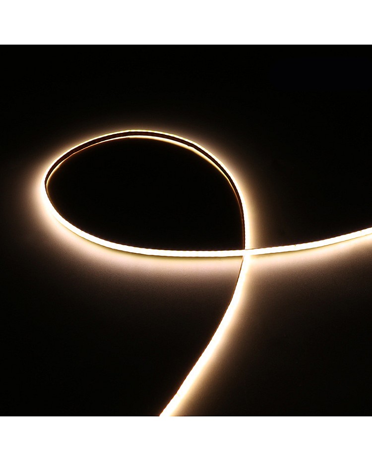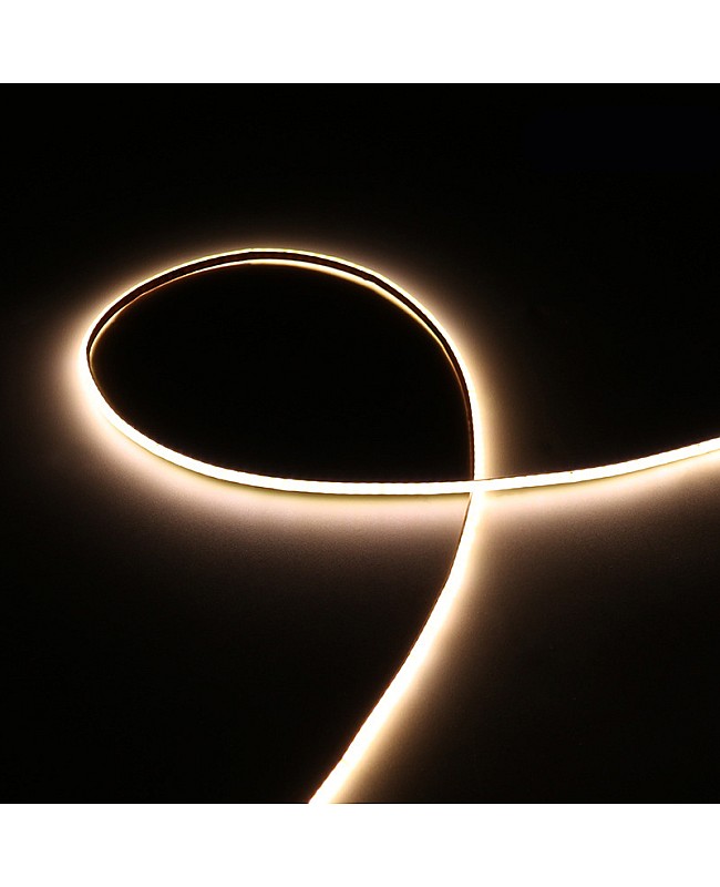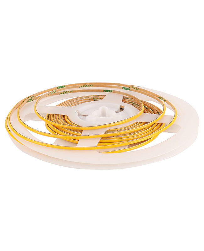 The width of the narrowest COB LED strips is only 2mm, allowing them to be installed in narrow or limited spaces that regular LED tapes cannot. Perfect for ultra-slim aluminum profiles or tight installations. They feature advanced COB (chip-on-board) technology, enabling 480PCS of LED chips to be attached to a one-meter PCB board, delivering continuous linear light with no visible LED dots, even in shallow or diffused profiles. They have a high color rendering index of 90Ra for true-to-life color accuracy. The standard length is 5 meters per roll, with a minimum cutting length of 25mm. You can cut to any size you need from the cutting point. The back features double-sided adhesive tape, making it easy to remove the protective paper and adhere it to the desired installation location. The LED COB strips can be used with LED dimmers to adjust brightness from 1% to 100%.