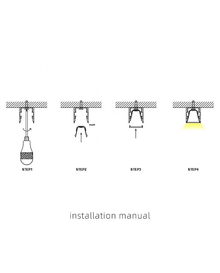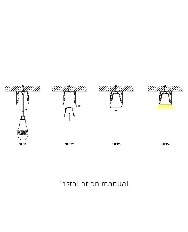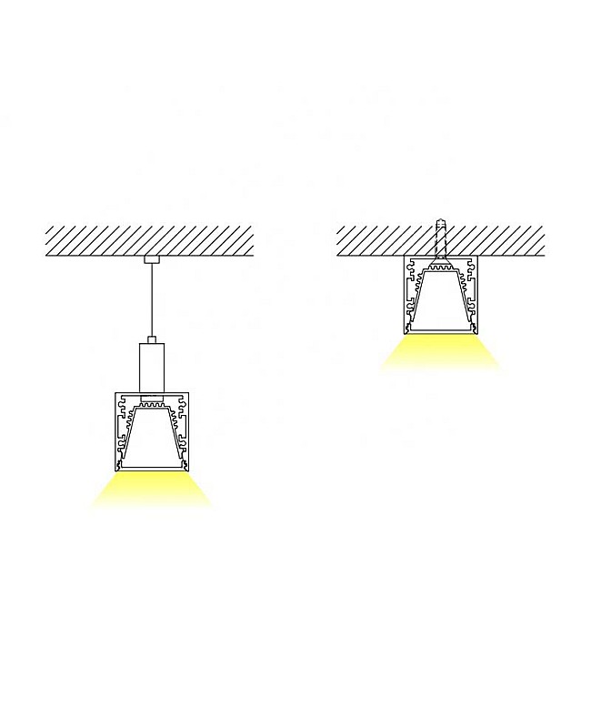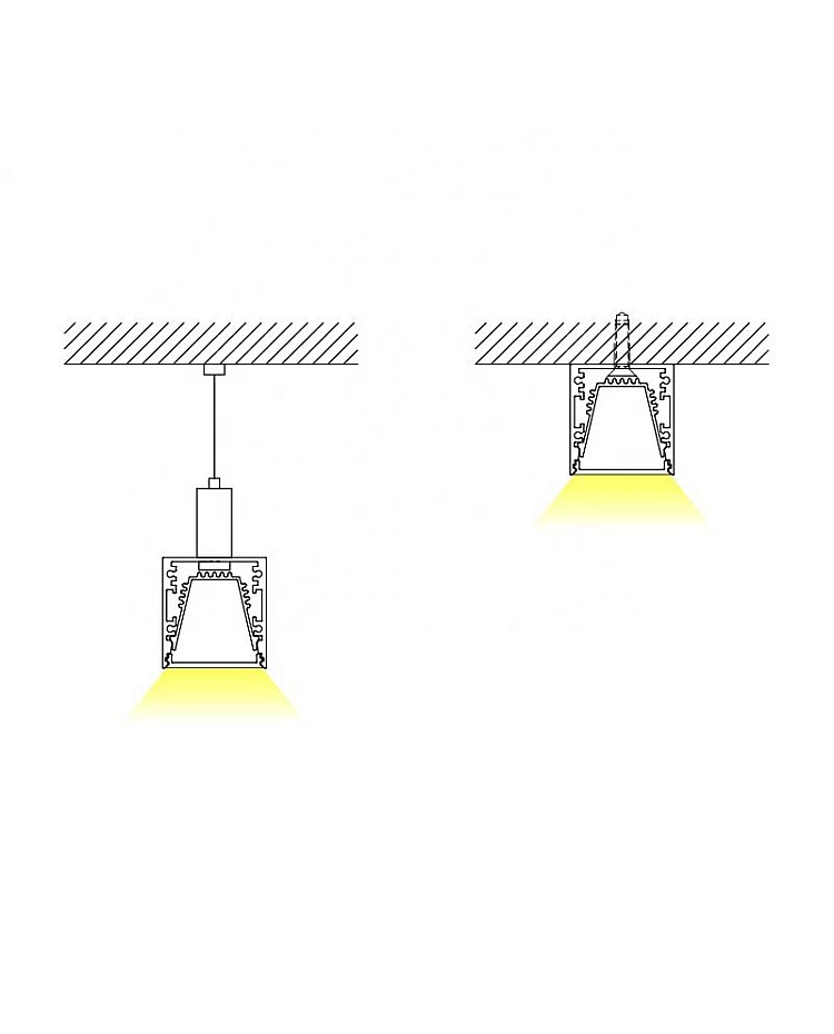The linear LED light channel is a modern ceiling lighting option with a sleek and stylish look. Comes with a PC frosted opal diffuser for a bright and uniform light source, perfect for any contemporary home or office space. The standard length is 1M and 2M, the max length is 2.5M, and it can be cut to any length fit for your needs. They are made of high-quality aluminum material with anodized surface treatment, anti-oxidation resistance, durability, and long-lasting. Only one type of diffuser is available: the PC frosted opal diffuser, which is made of brand material with stable quality, anti-yellowing, perfect light distribution, and soft light output. The inner width is 13mm, allowing the maximum width of Flexible Strip Lights to be 13mm. We recommend adding the high-density dual white COB strip lights as a light source, making it easy to connect to the CCT dimmer to adjust brightness and color temperature to create a bright atmosphere. The COB LED strips are easy to install on the inserted heat sink for better heat dissipation, and elevate the LED strips closer to the diffusers to generate more illumination. Three couplers are sold separately, allowing the channels to be easily linked 90° or 180°. The suspension wire kits are included and are easy to hang on the ceiling. You can use them as the main lighting or auxiliary light in offices, retail stores, supermarkets, shops, and gyms.