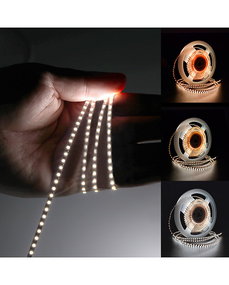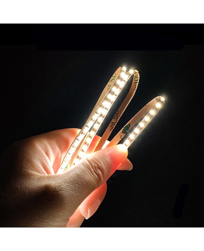 The Thin LED Strip Lights, which can operate on either DC 5V or DC 3.7V, can be powered by batteries, power banks, and LED drivers. The narrow width allows for installation in compact spaces or along edges, providing a seamless and integrated lighting effect. You can use them to enhance the ambiance of a room or highlight certain areas. The Thinnest LED Tapes utilize 2016 SMD LEDs as the light source, with each meter containing 200 pieces of LEDs. The length of each roll is 5 meters(16.4 feet), and the minimum cutting length is 10mm; you can cut to any size for your needs. Three colors are available: 3000K warm white, 4000K natural white, and 6500K cool white. You can use them for various applications. The Slim LED Strips feature double-sided adhesive tape on the back, making it easy to remove the protector and stick them to the desired installation location. They can work with PWM Light Dimmers to adjust the brightness freely.