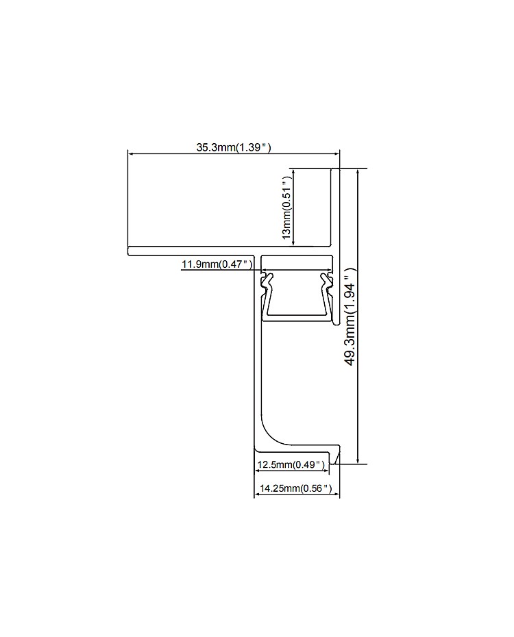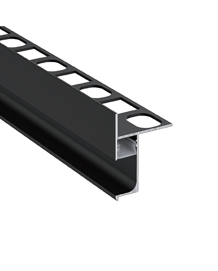 The tile-in LED channels are designed for integration into the edge of tiles for stair lighting. They can be flush-mounted with 13mm tiles and provide downward indirect lighting on the steps to create a cozy illumination and enhance safety. It features a tile-over flange design for a clean, modern look, making it ideal for stair installations. They are made from 6063-T5 extruded aluminum material and have a black anodized surface treatment for anti-oxidation resistance and for a longer lifespan. The standard lengths are 1 m and 2 m, and can be cut to any length you need. Custom length is supported. The inner width is 11.9 mm and allows the maximum width of strip lights to be 11mm. Recommend adding our high-density 10mm COB strip lights as the light source without visible light dots and dark areas. The aluminum channels can serve as heat sinks for better heat dissipation. Only one type of diffusers available: the PC diffused covers. They are made of brand material, anti-yellowing, will provide uniform, soft light distribution. The end caps with and without wire holes are included.