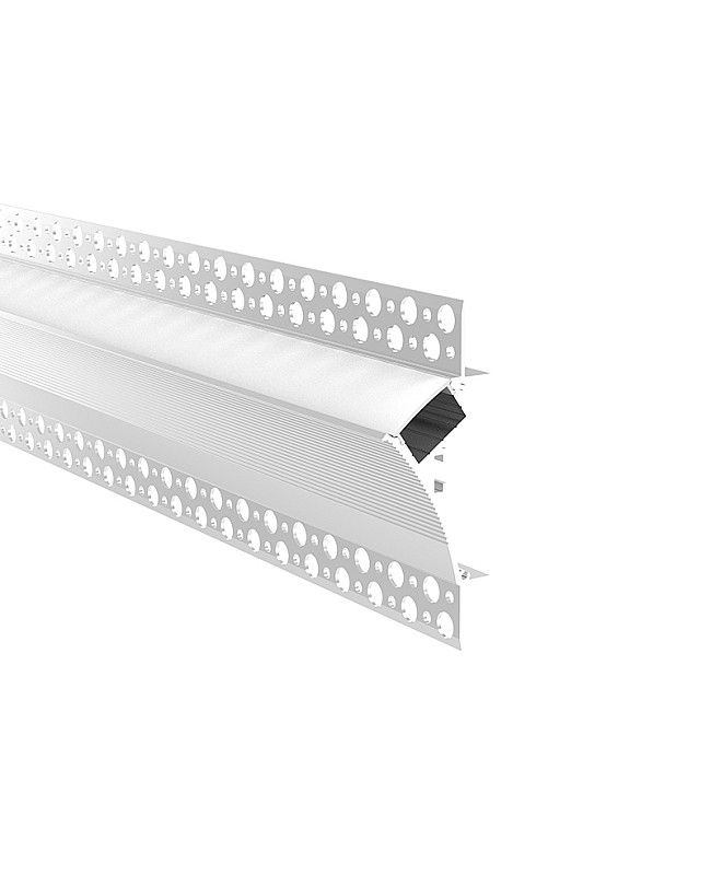 The aluminum light profiles and diffusers can be trimless and recessed into the drywall, directing light upward towards the ceiling without glare. The ALP128 LED channels feature honeycomb-hole flanges, allowing for seamless recessed mounting between plasterboards for a clean, modern appearance. When used in an architectural setting, it provides a more aesthetically pleasing appearance, especially for cove areas. These lighting channels are designed to diffuse lighting evenly, creating uniform and even illumination along the cove tunnel. They are constructed from 6063-T5 aluminum alloy with a durable, white powder-coated finish, providing oxidation resistance and a long-lasting finish. The standard lengths are 1 m and 2 m, and they can be cut to any size that fits your project. Features an opal matte PC diffuser, made from brand-stable material that is anti-yellowing and designed for smooth, even light distribution. The inner width is 18.7 mm, allowing for a maximum width of LED tapes of 15 mm. Adding our static color or color-changing LED strips provides uniform illumination, enhancing aesthetics while eliminating harsh glare. 90°, 90° vertical, and 180° couplers are sold separately for corner installation or extended runs.