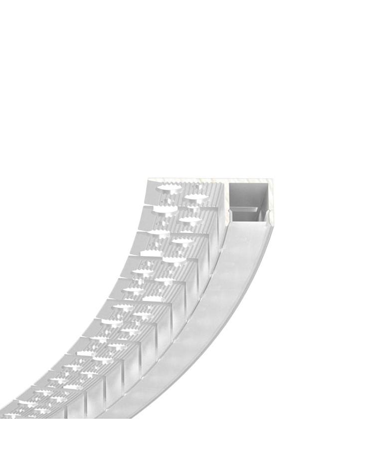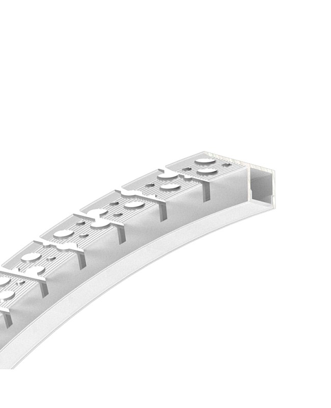 The Border Flexible LED Light Channels, which have a single flange design, can be flush mounted and plastered in with 12mm/0.47" marble boards, wooden panels, decorative panels, etc. There are side-bending and up-down bending products available, and you can use them to design and make decorative and curved line lighting in residential and business places. It can be seamlessly blended into the plasterboard walls or ceilings. They are made of 6063-T5 extruded aluminum material and feature a silver anodized surface treatment, providing anti-oxidation resistance and a longer lifespan. The stock lengths are 1 m and 2 m, and they can be cut to any size to meet your needs. The inner width is 10.3mm, allowing the maximum width of Strip Lights to be 10mm (UP-Down Bending) or 6mm (Side Bending). Recommend using high-density COB Tape Lights as the light source to create a continuous, smooth line of lighting, with no light spots or dark areas. Only semi-clear silicone diffusers are available; they are made of high-quality silicone material, anti-yellowing, and with perfect light distribution. The Wings of the drywall plaster-in LED profiles with small round holes, which allow for screwing to the wooden or plasterboard panels. This will make the installation on the ceilings or walls easier.