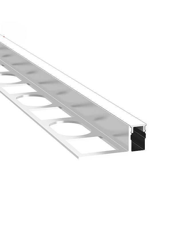 These recessed LED tape profiles are designed for seamless integration into tiled surfaces, delivering sleek and modern lighting effects. They can flush mount with 10 mm tiles or marbles, providing a seamless, low-profile lighting solution for tile installations. Suitable for bathrooms, kitchens, hallways, and commercial spaces. The marble LED profiles are made of 6063-T5 extruded aluminum material with an anodized surface treatment for enhanced oxidation resistance and a longer lifespan. The standard lengths are 1 m and 2 m, and can easily be cut to any length for your project. The inner width is 5.5mm, allowing for a maximum width of 5 mm for the LED strips. The PC opal matte diffuser is included, made of brand-stable material, and features anti-yellowing properties, ensuring perfect light distribution that diffuses the light evenly. End caps with wire holes are included.