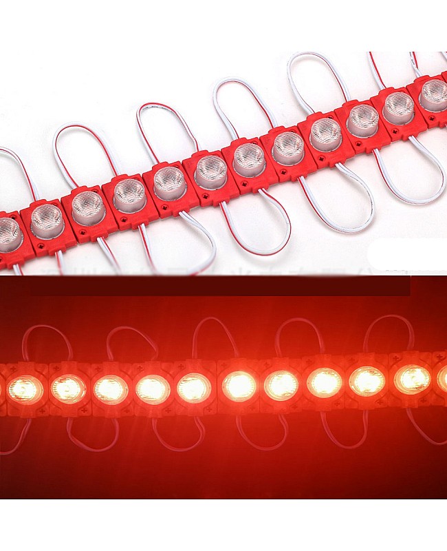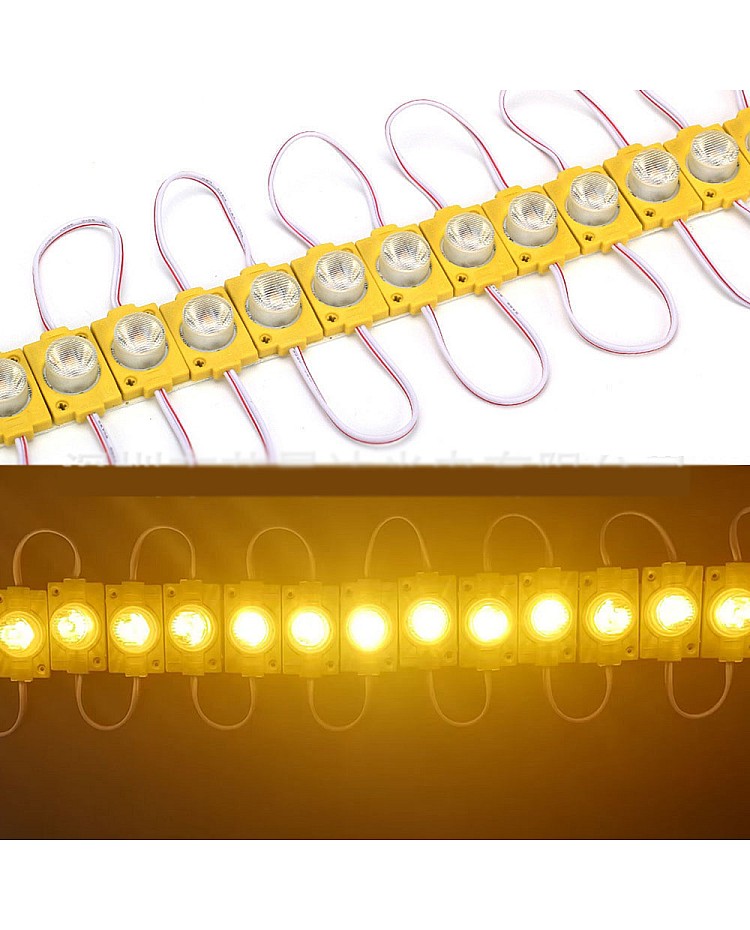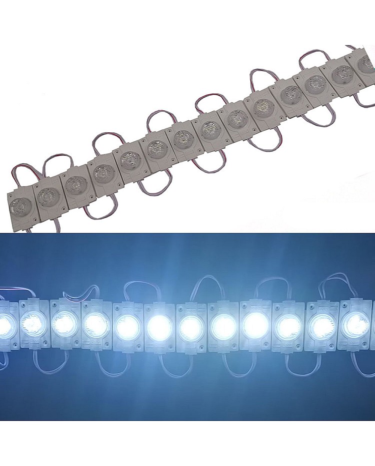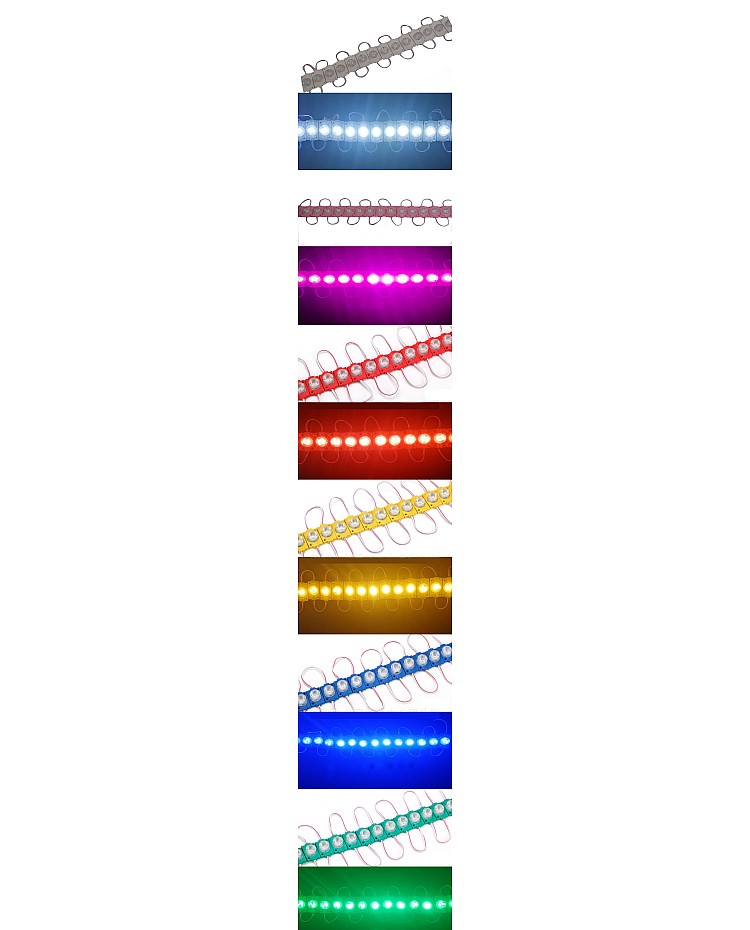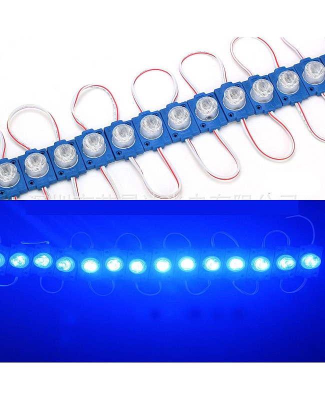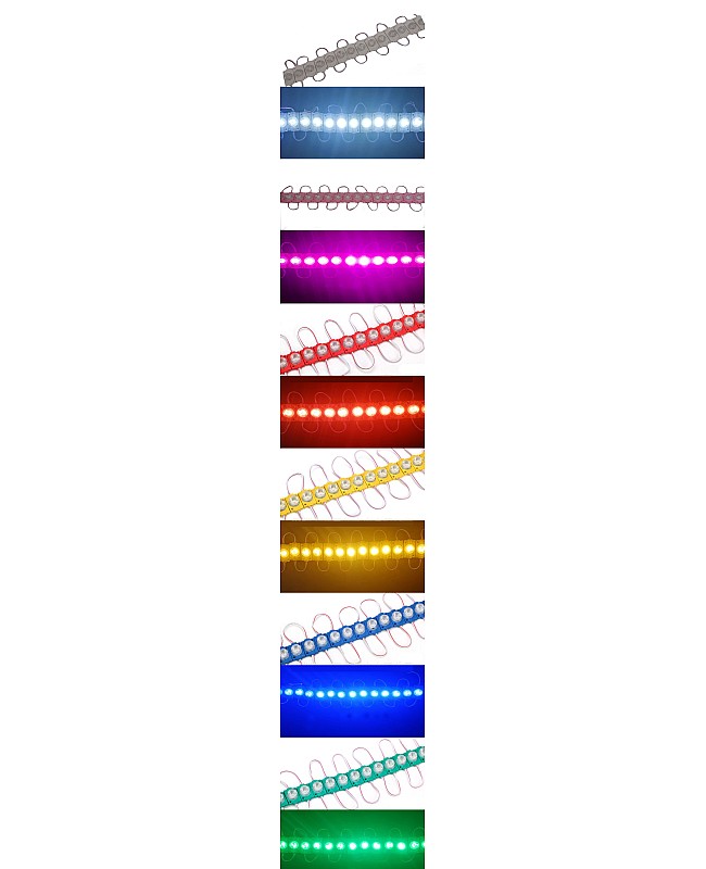 The super bright 3030 waterproof vehicle LED module strings use one piece of high-quality 3030 LED chip as the light source. The LEDs are mounted on a high-quality aluminum PCB board for better heat dissipation, a longer lifespan, and stable performance. LED chips from Taiwan have high efficiency and a long lifespan. You can choose various colors from warm white, cool white, red, blue, green, yellow, pink, etc. The surface has a PMMA lens for a good lighting effect, with no shadows or dark areas. With screw holes and the back with double-sided adhesive tape, it is easy to stick on the place you want to install or use screws to fix them. It comes with 20 pieces of LED modules per string, and you can cut the quantity you need and reconnect them for your projects. You can use them for light boxes, signs, channel letters, cars, trucks, etc.